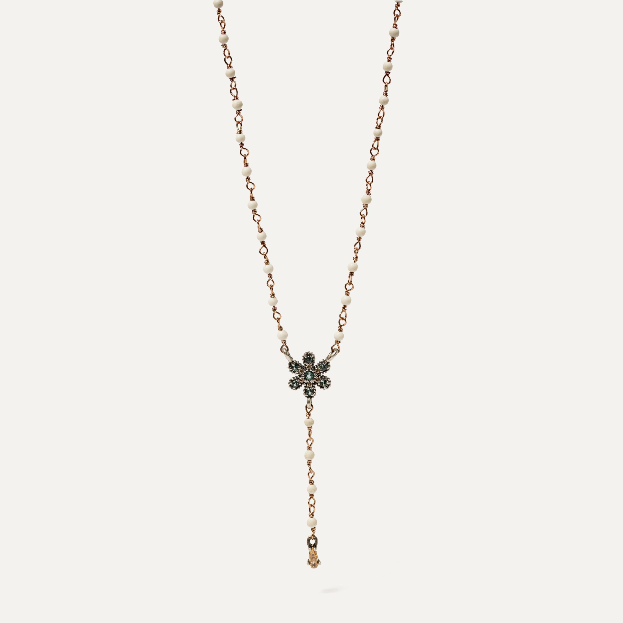 Pendentif en argent 925 avec quartz hydrothermal, zircone, cristal et nylon, disponible en 3 combinaisons de couleurs au choix.