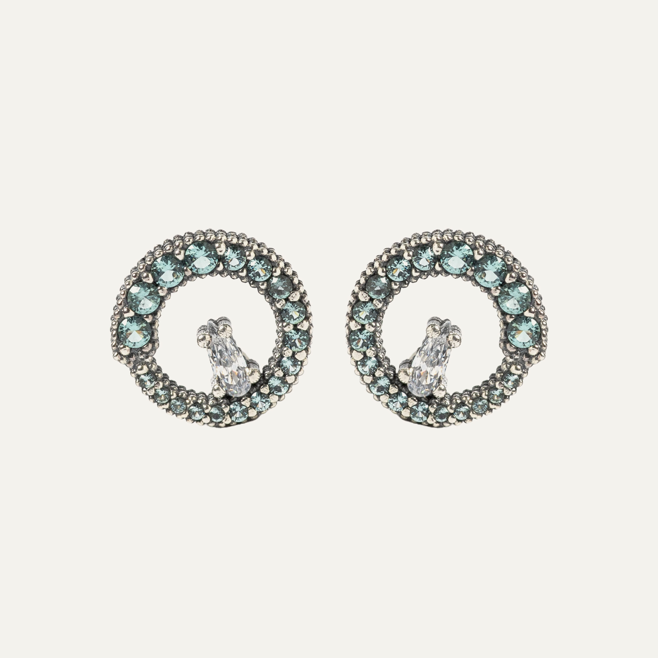 Boucles d'oreilles en argent et zirconium dans un choix de deux combinaisons de couleurs.
