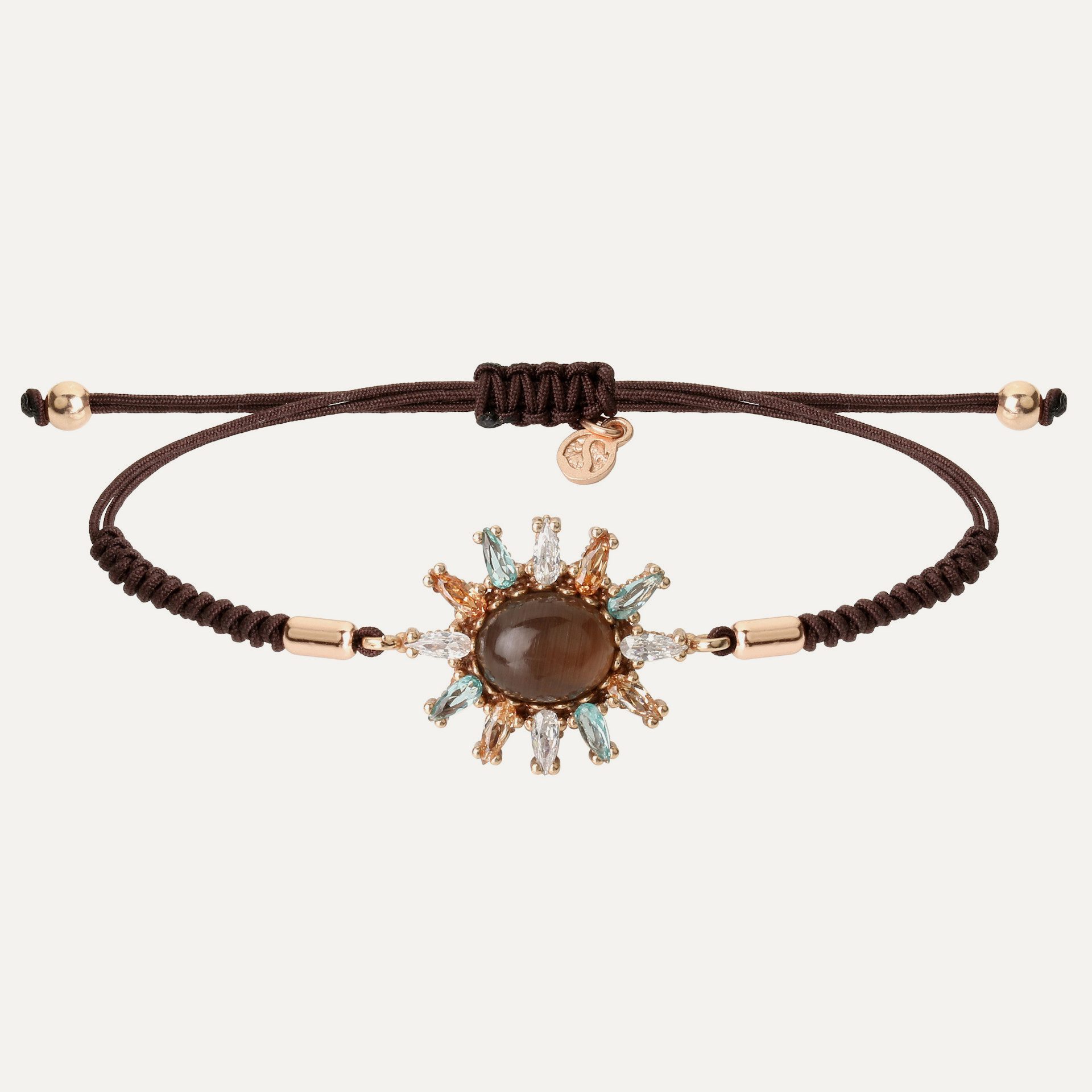 Bracelet en argent 925 avec quartz, zircons et nylon.
