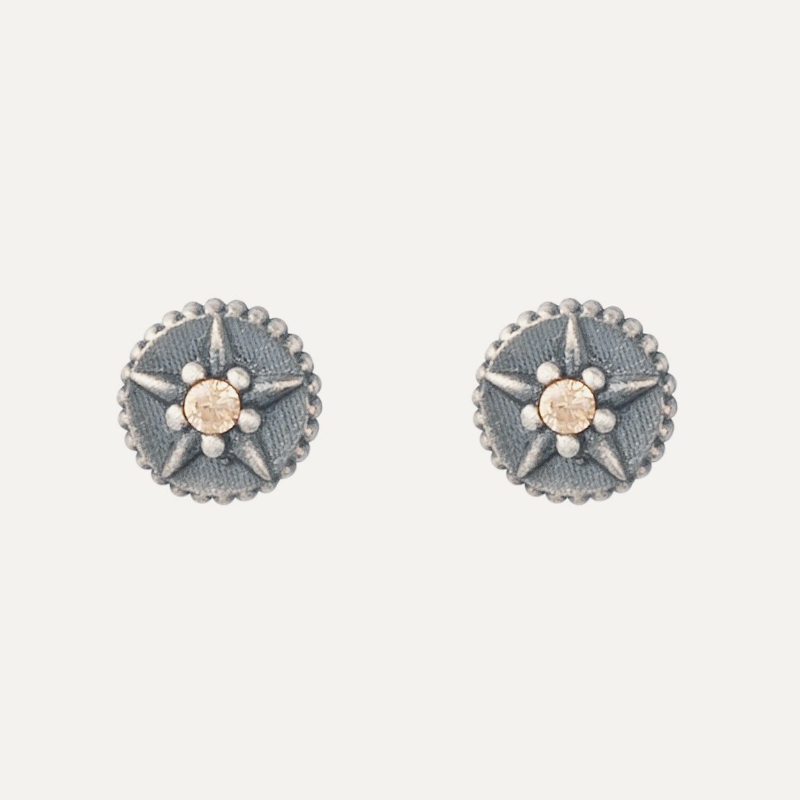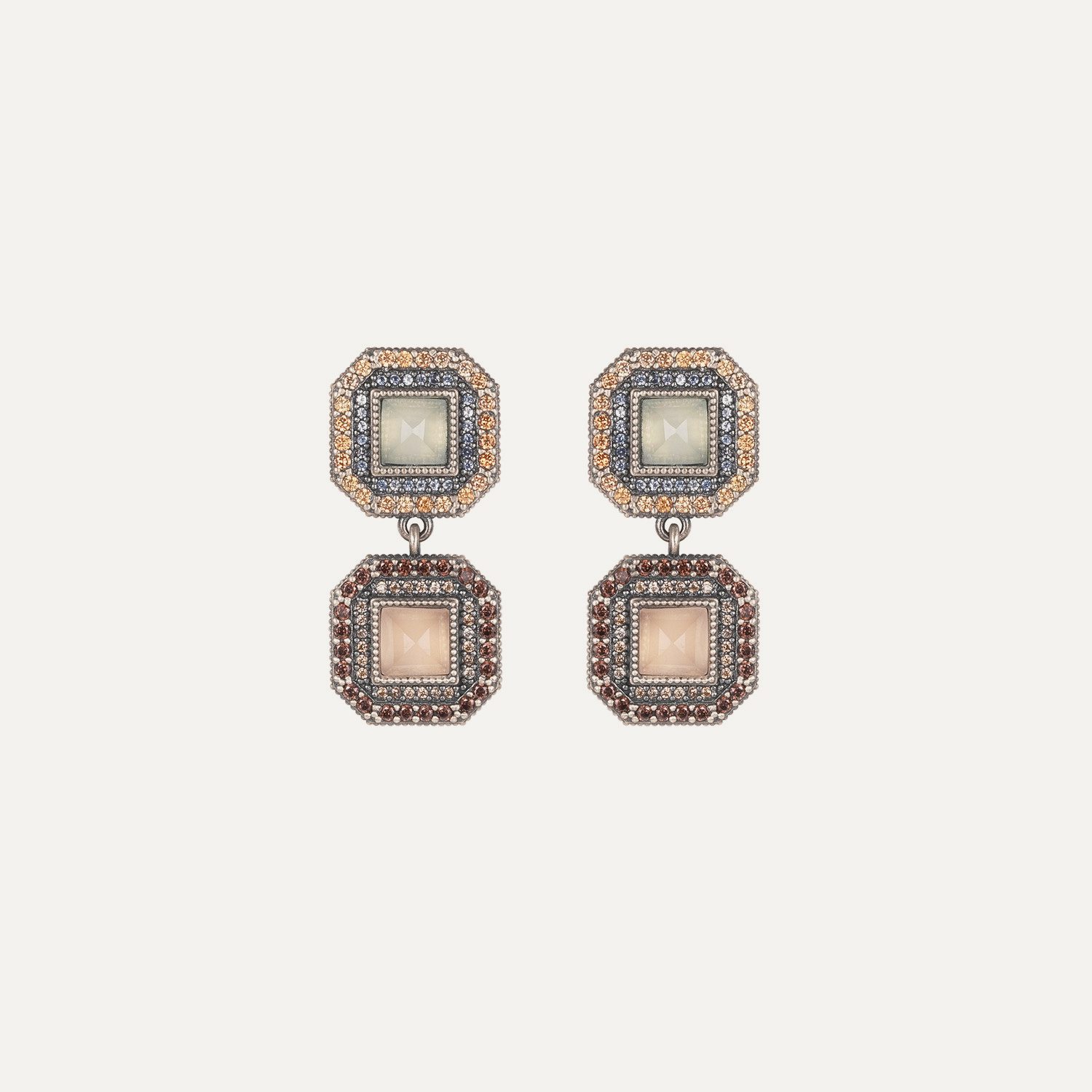 Boucles d'oreilles courtes en argent 925 avec finition antique, calcédoine, tourmaline rose et zircone cubique dans un double design octogonal. Style...