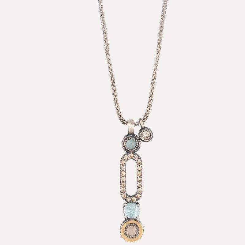 Pendentif en argent sterling, quartz aigue-marine, agates, hématite, zircons et nylon.