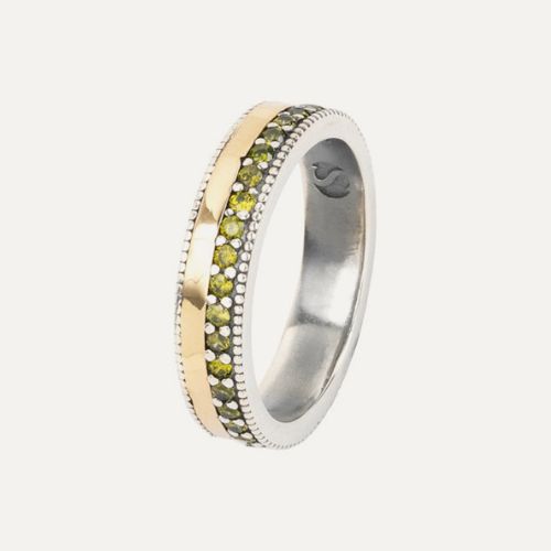 Bague en argent 925, avec un anneau central en or jaune et zircon vert serti.