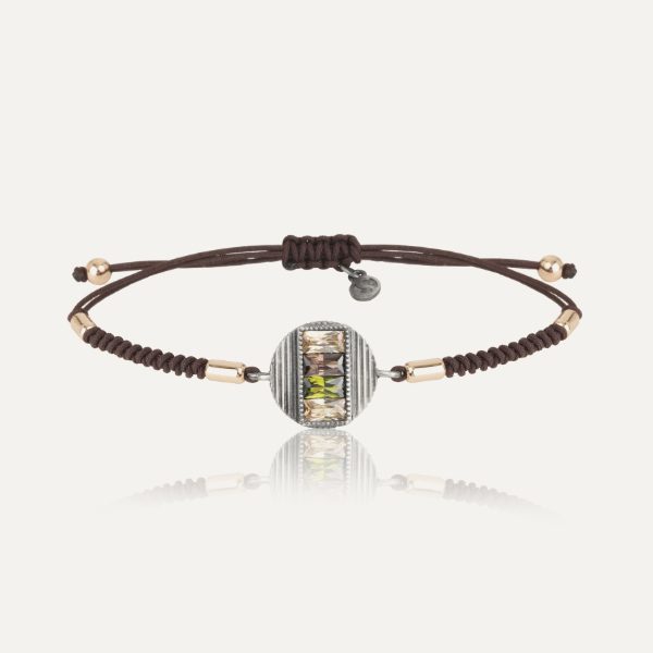 Bracelet en argent 925 avec finition antique, zircons et nylon.