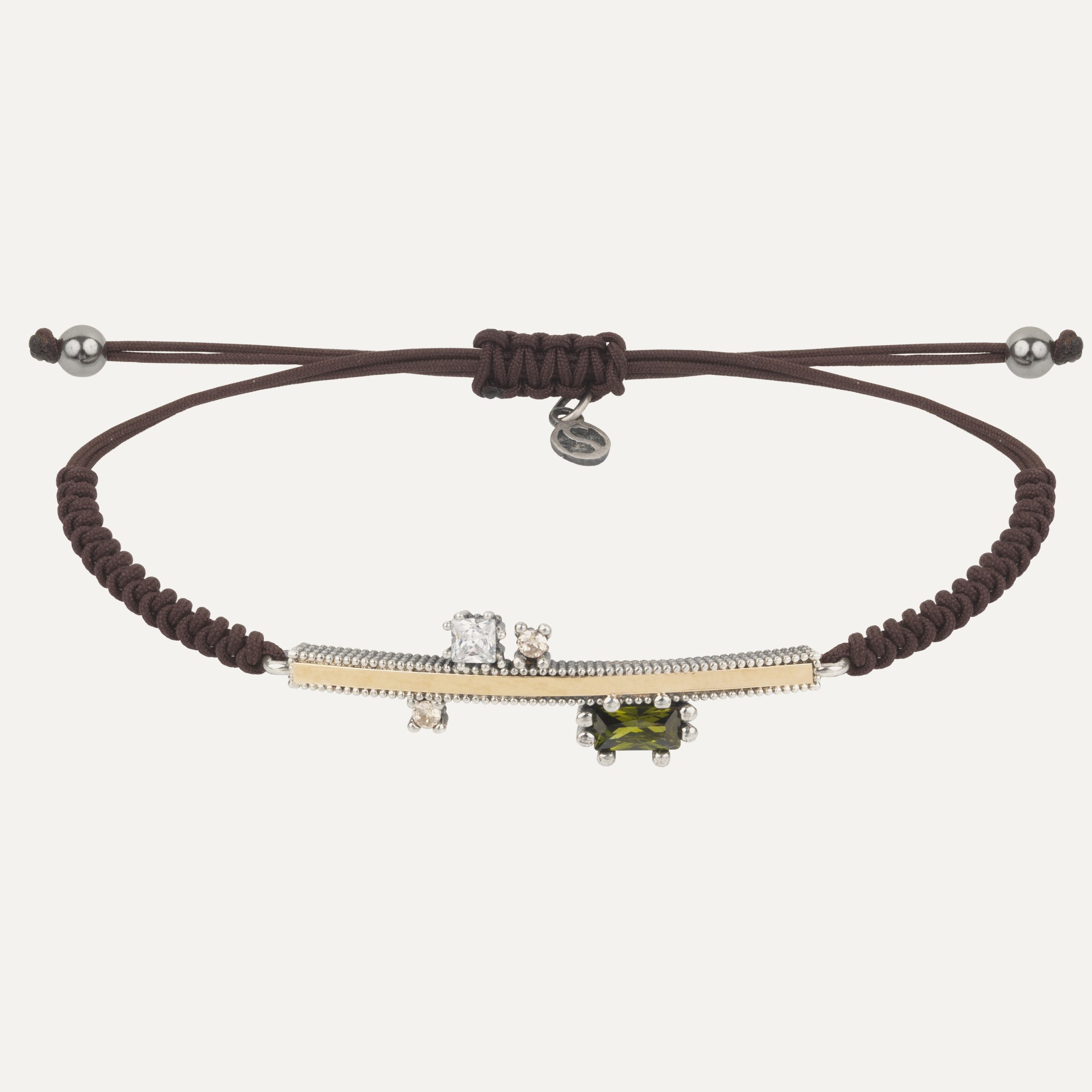 Bracelet en argent 925 avec or 9kt, zircons et nylon.