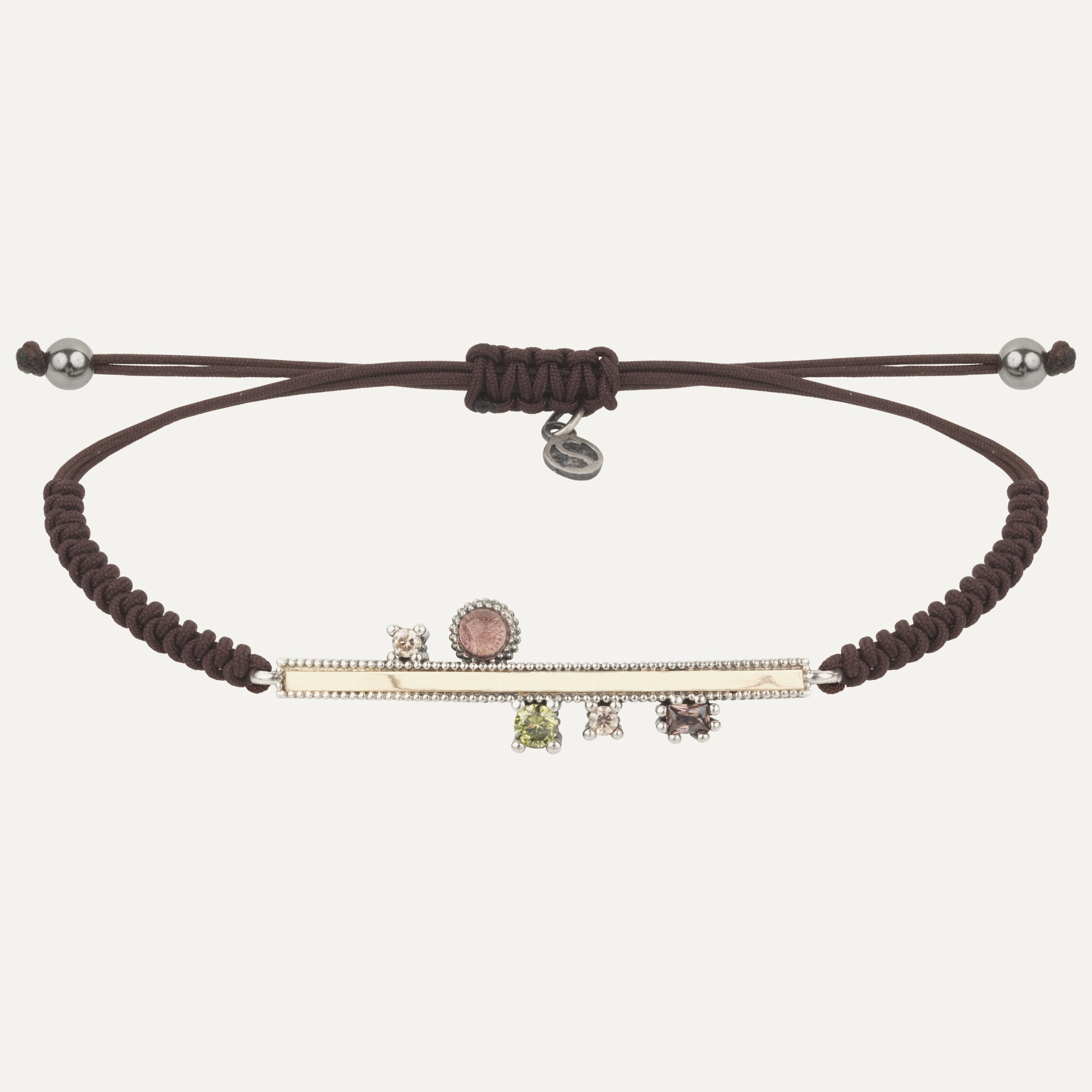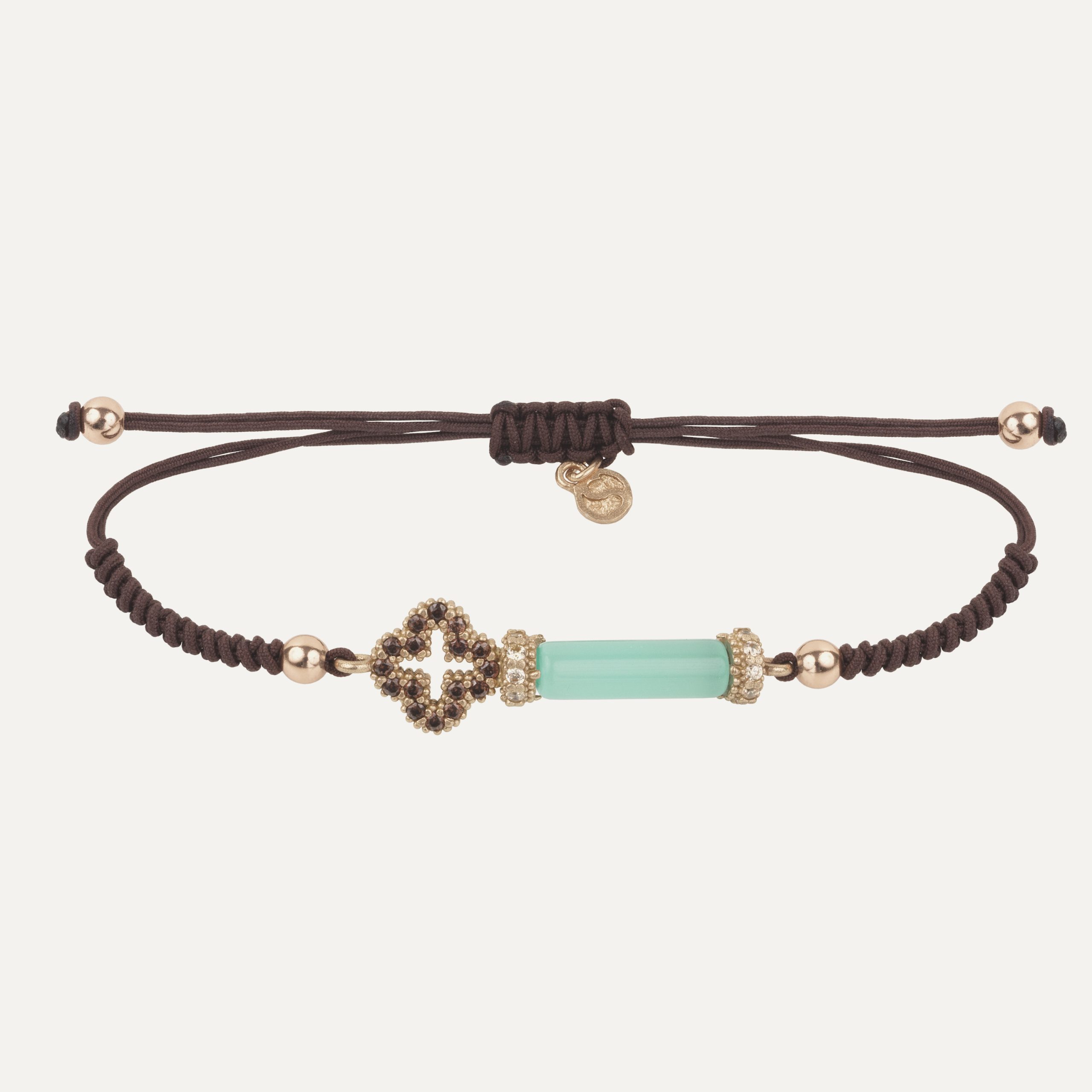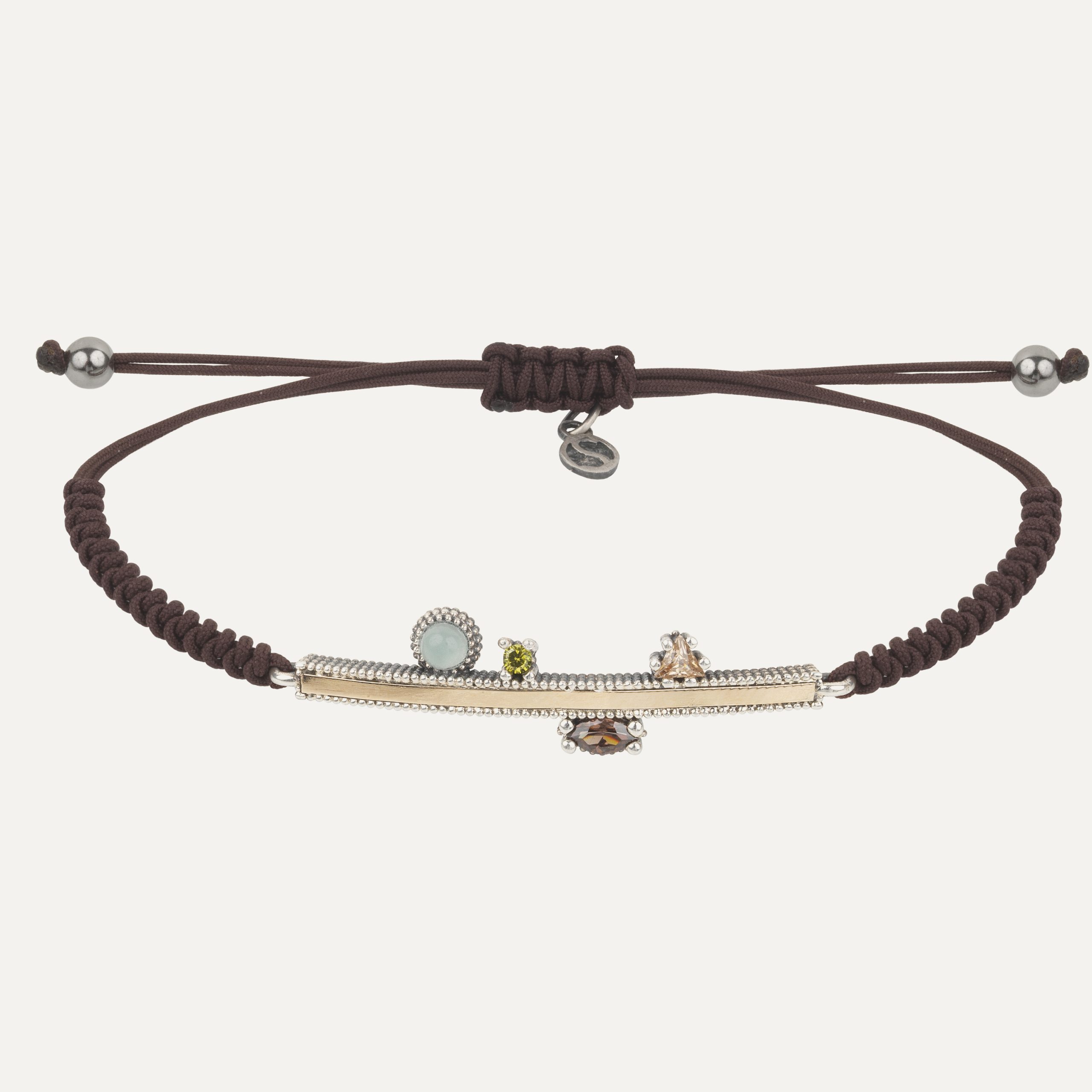 Bracelet en argent 925 avec or 9kt, calcédoine, zircone et nylon.