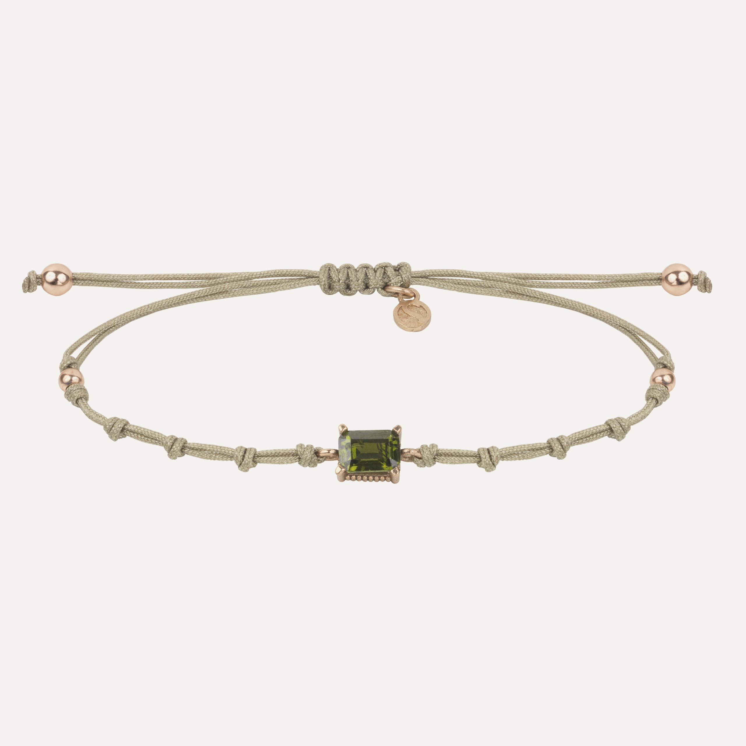 Bracelet en argent 925 avec or 9kt, tourmaline rose, zircons et nylon.