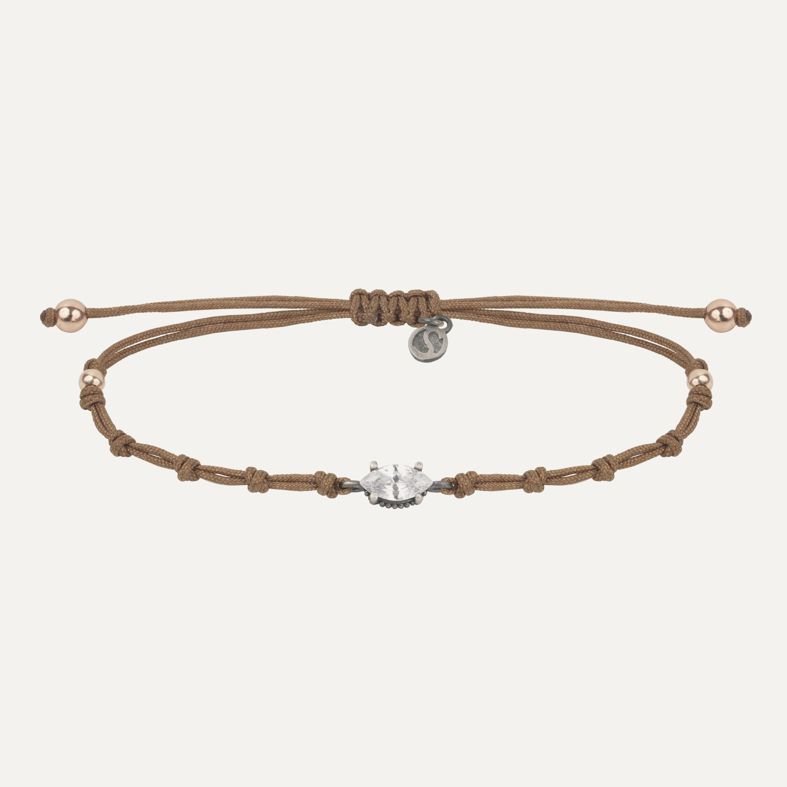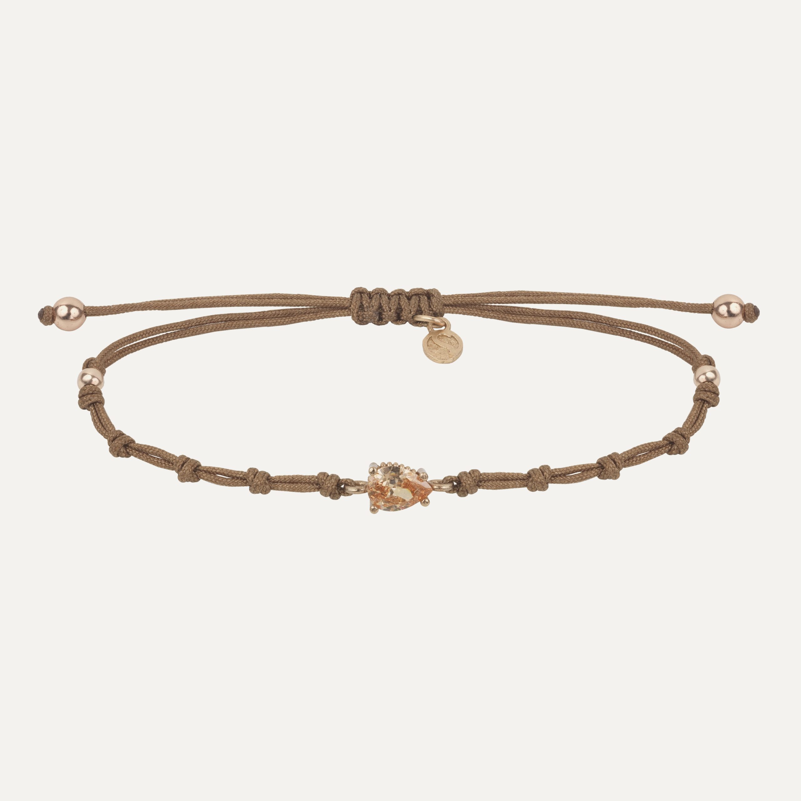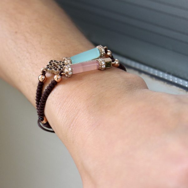 Bracelet en argent 925, plaqué or rose 24kt, calcédoine, zircons et nylon.
