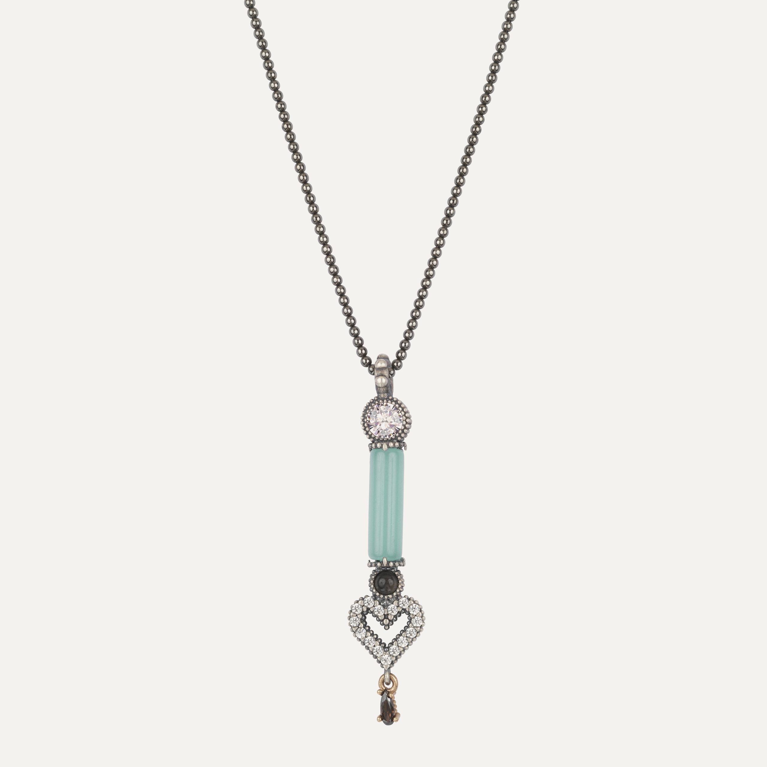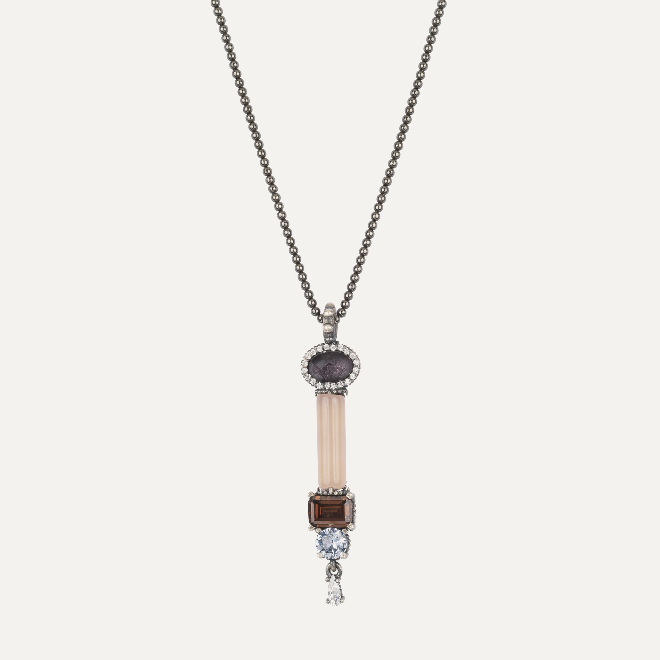 Pendentif en argent 925 avec calcédoine, quartz fumé et zircone.
