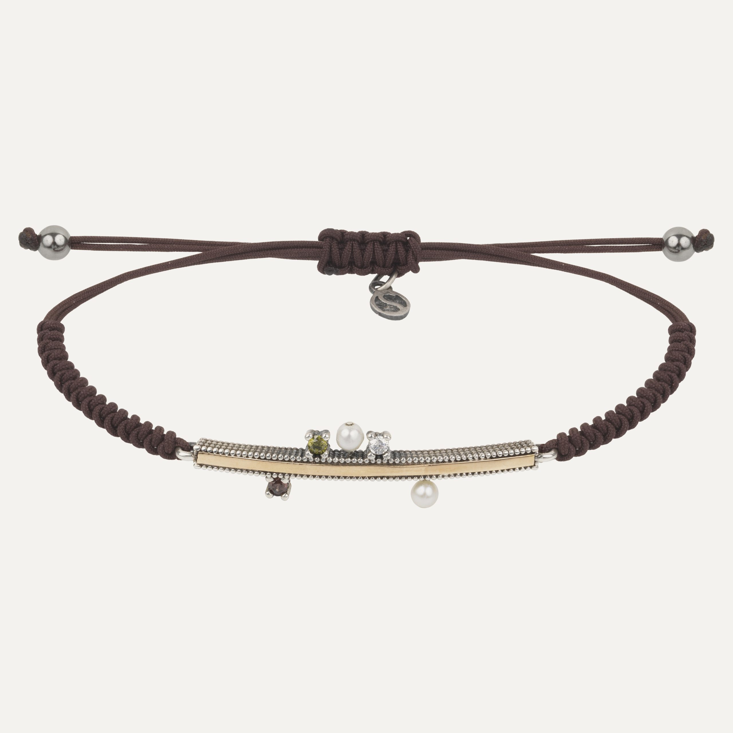 Bracelet en argent 925 avec or 9kt, perle baroque, zircons et nylon.
