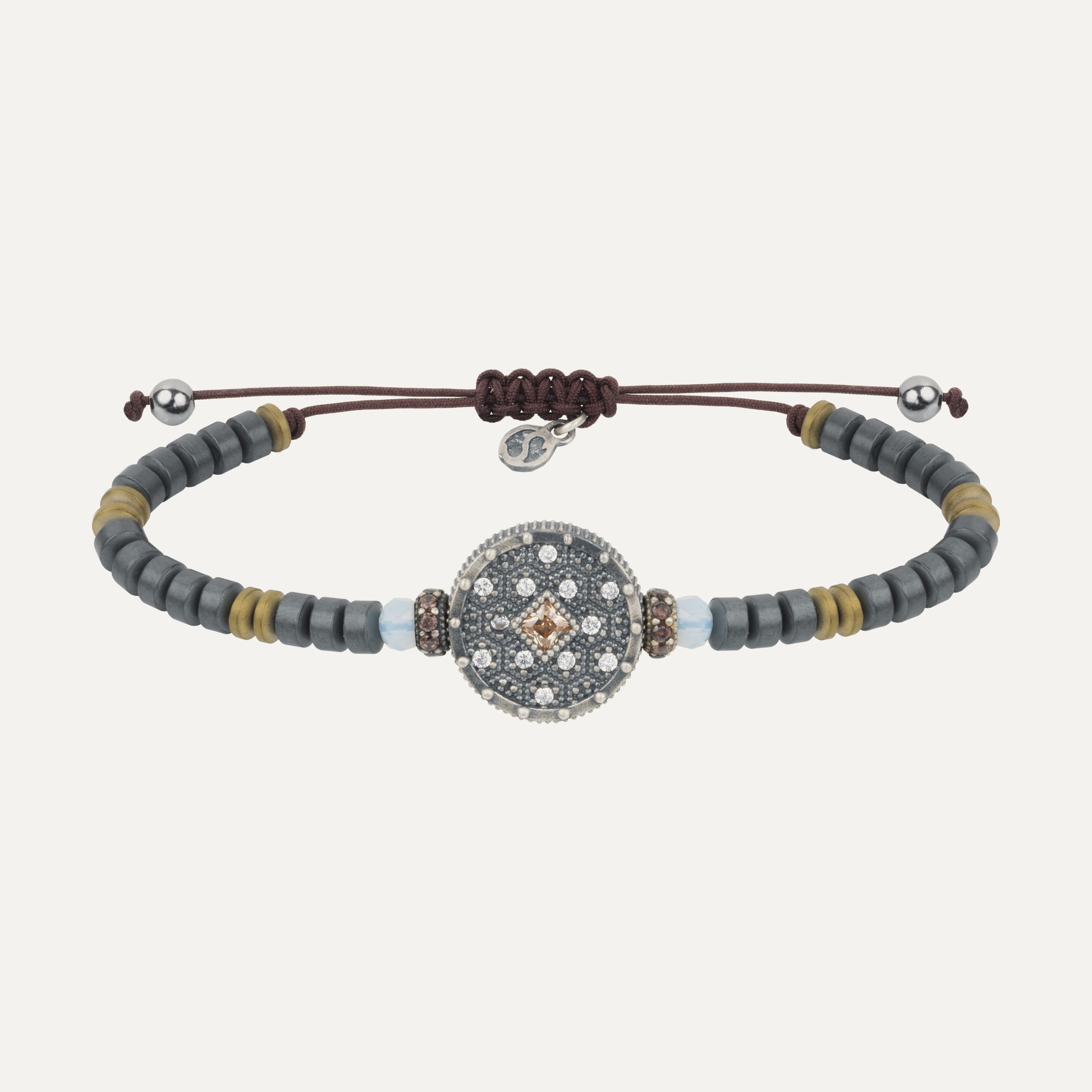 Bracelet en argent 925 avec calcédoine, zircone, perles de verre, hématite et nylon.