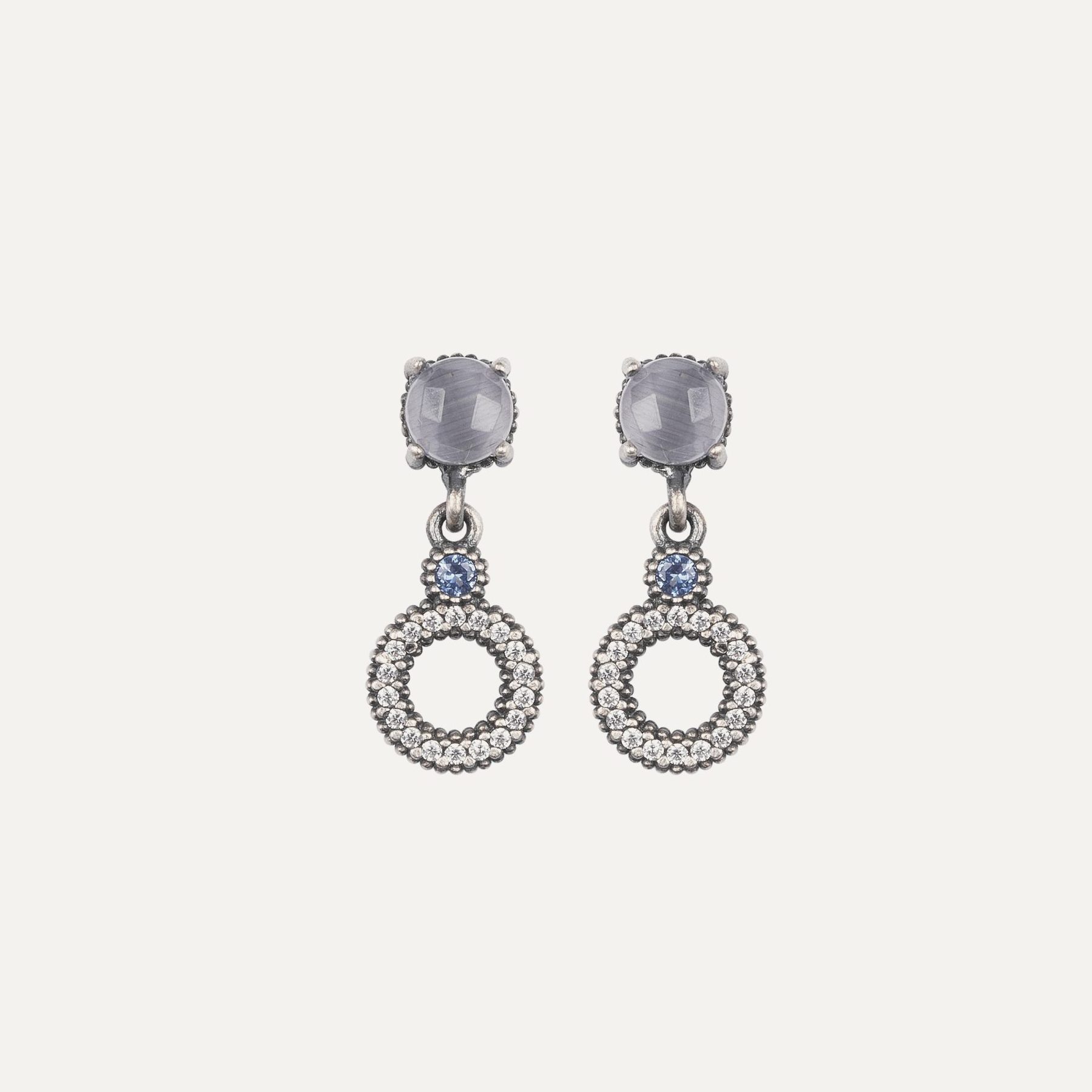 Boucles d'oreilles en argent 925, quartz gris et zircone.