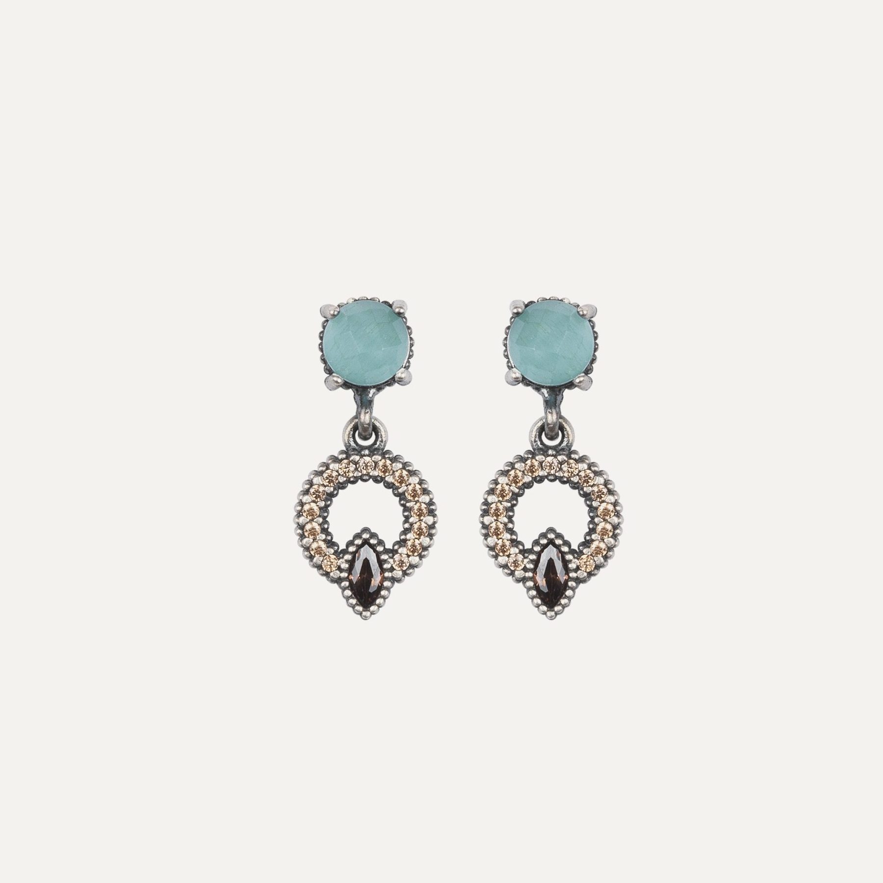 Boucles d'oreilles en argent 925, calcédoine et zircone.