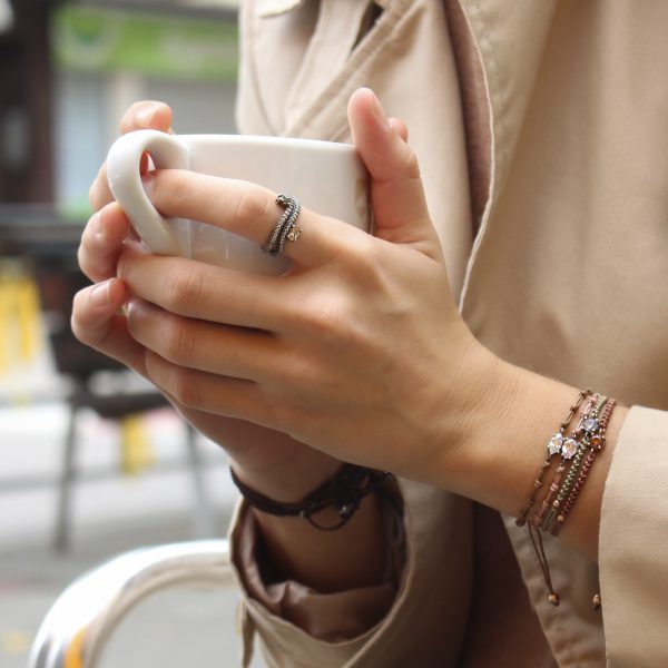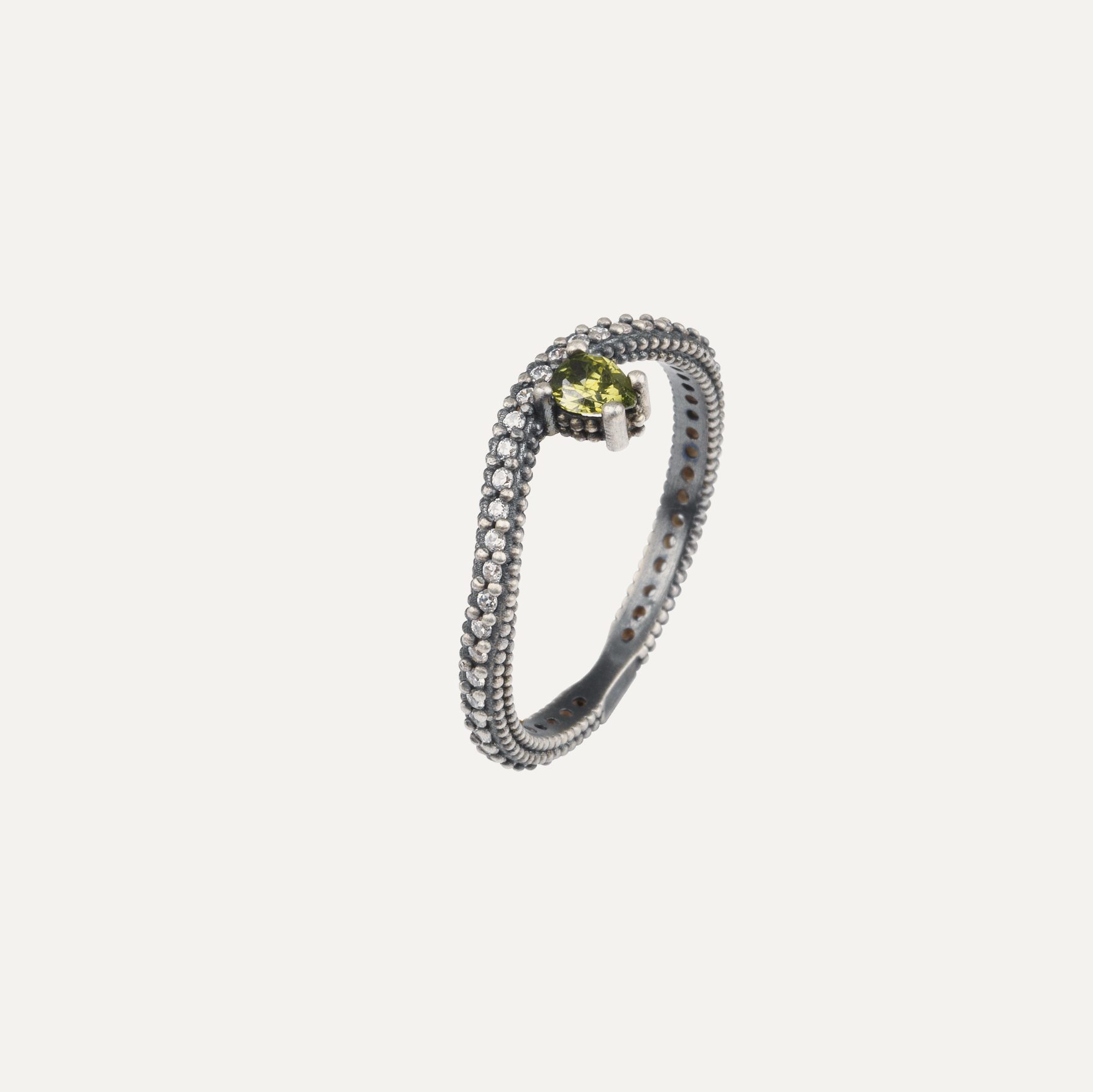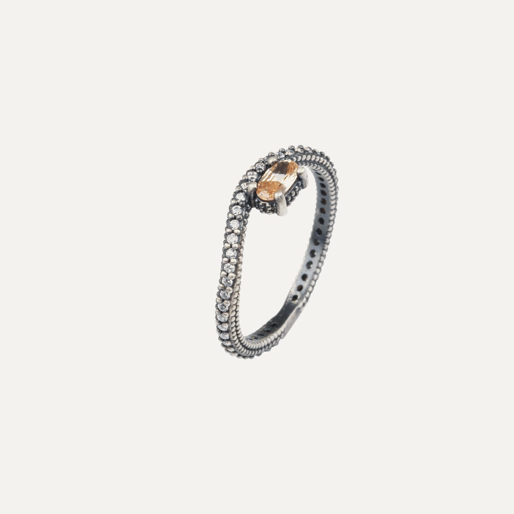 Bague en argent 925 avec finition antique, quartz et zircone dans un choix de trois couleurs.