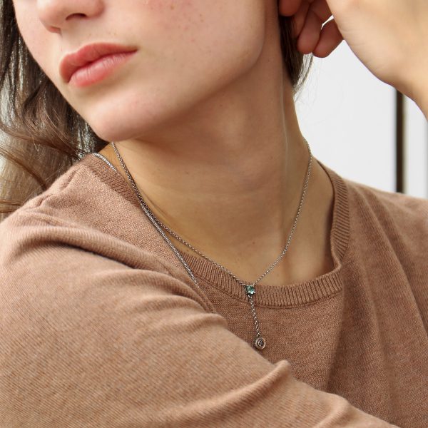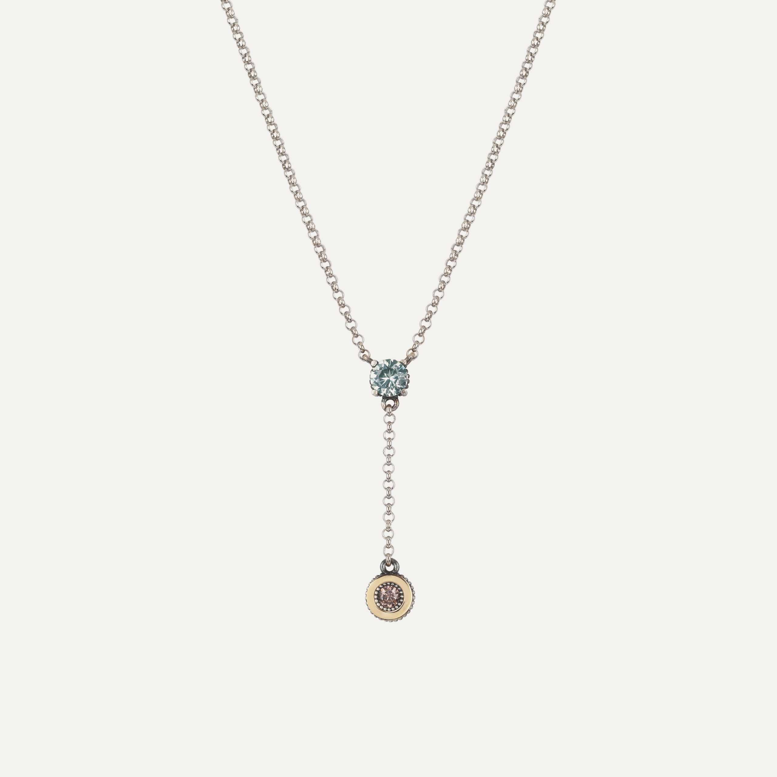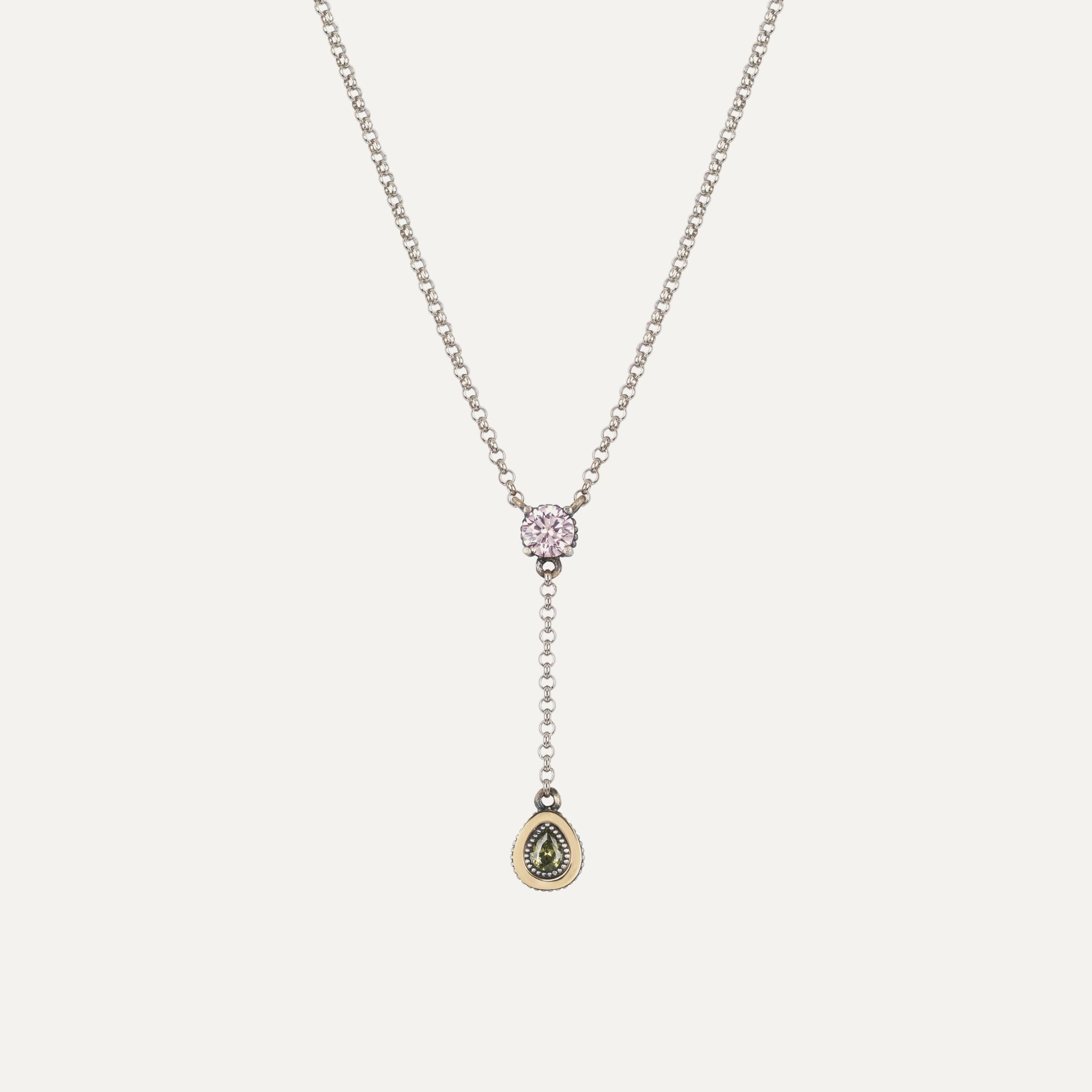 Pendentif en argent 925 avec finition antique, calcédoine, tourmaline rose et zircone.