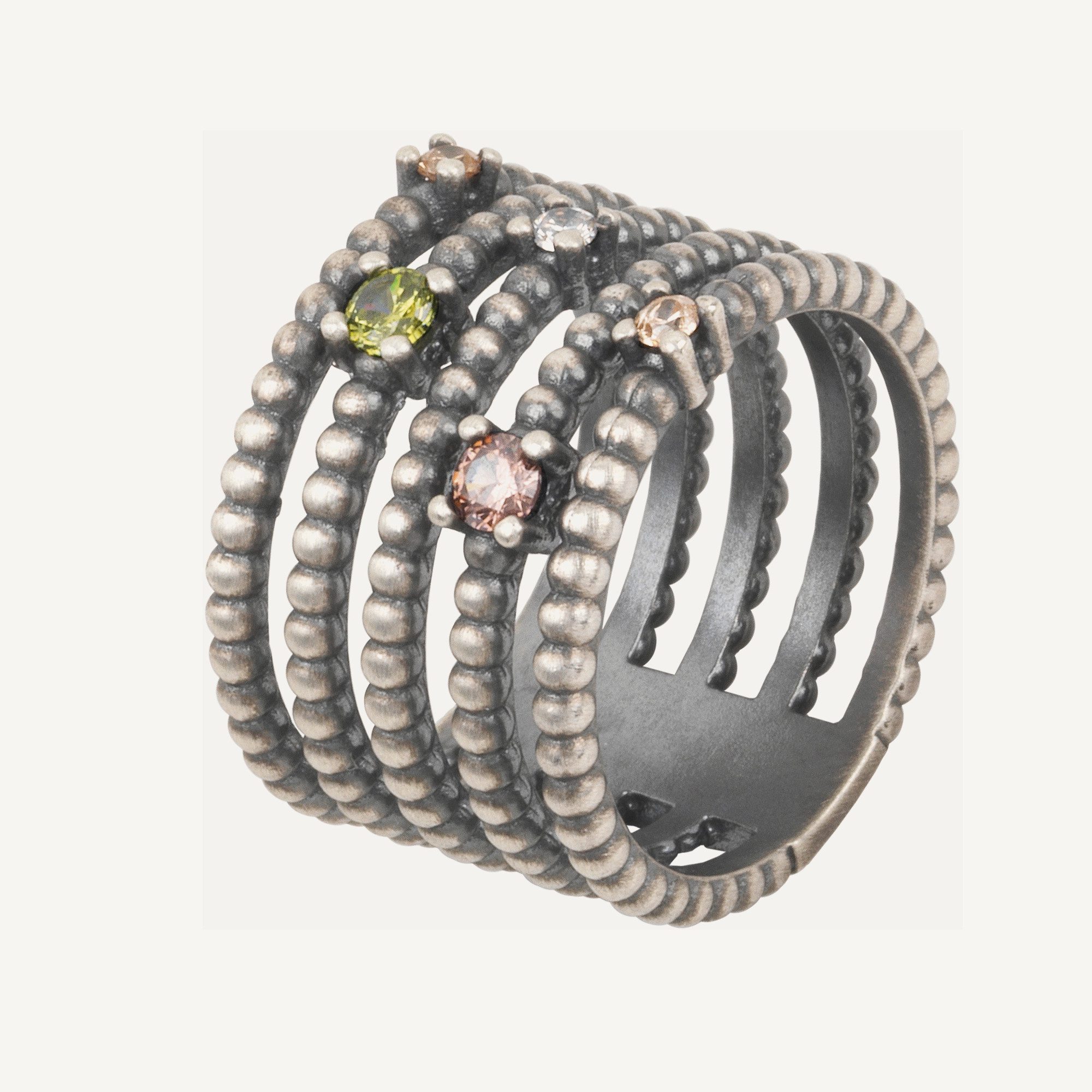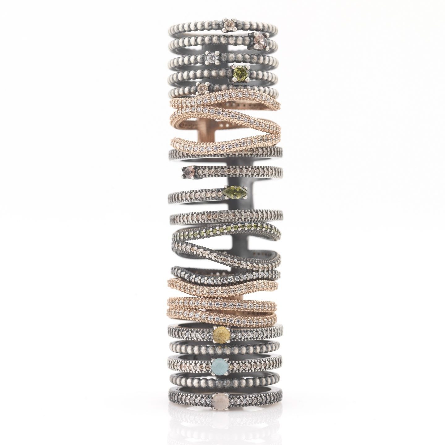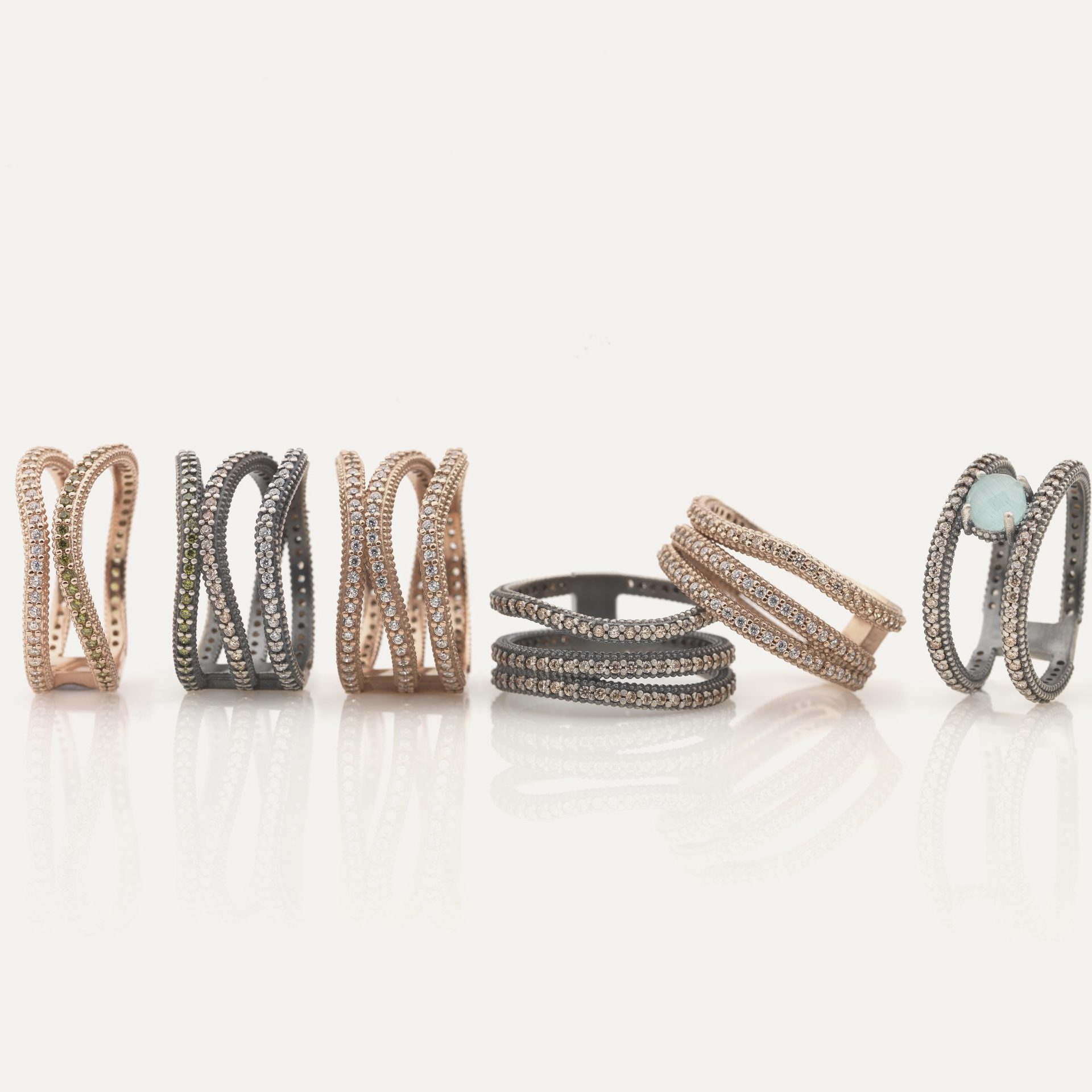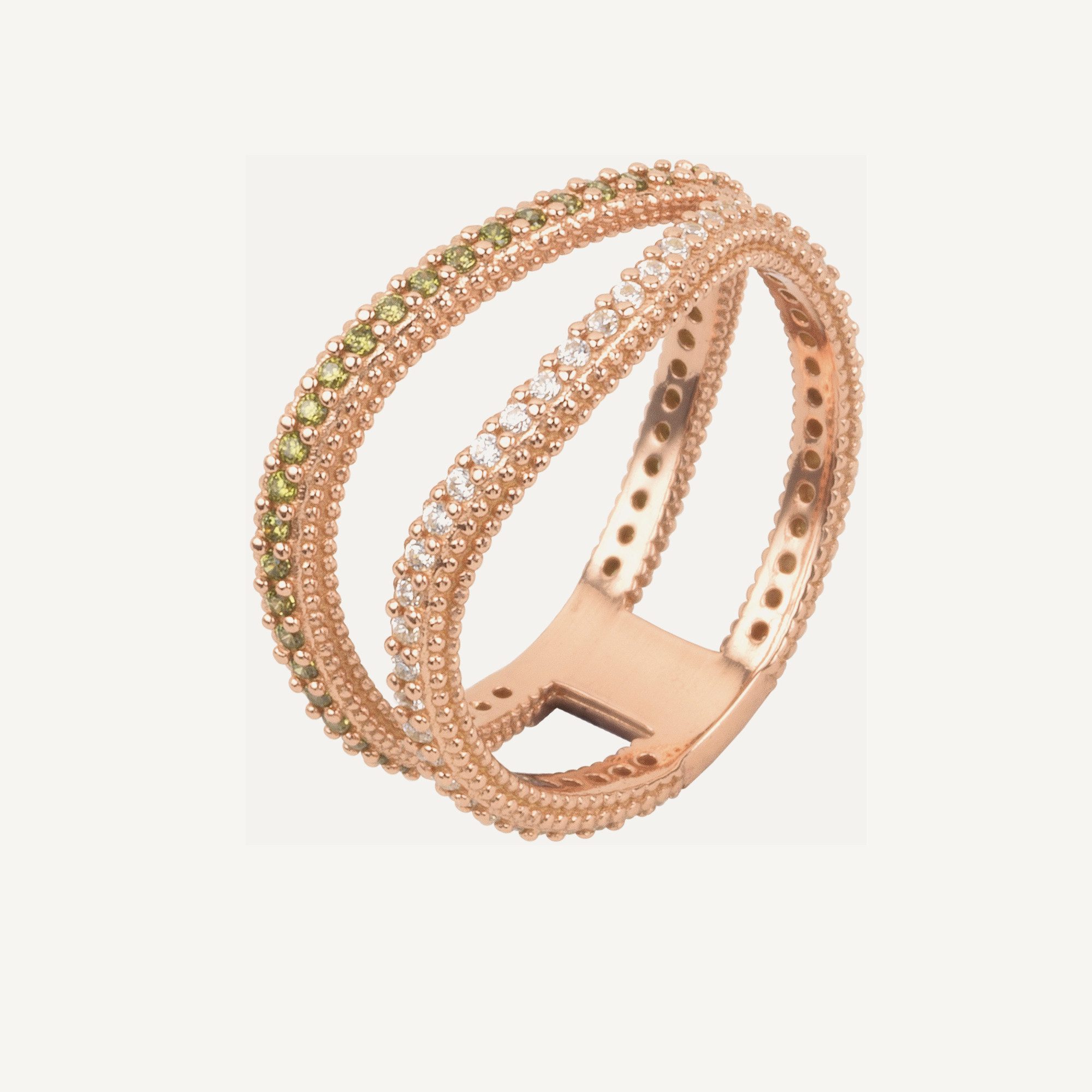 Bague en argent 925 avec plaquage en or rose 24kt et zircons.