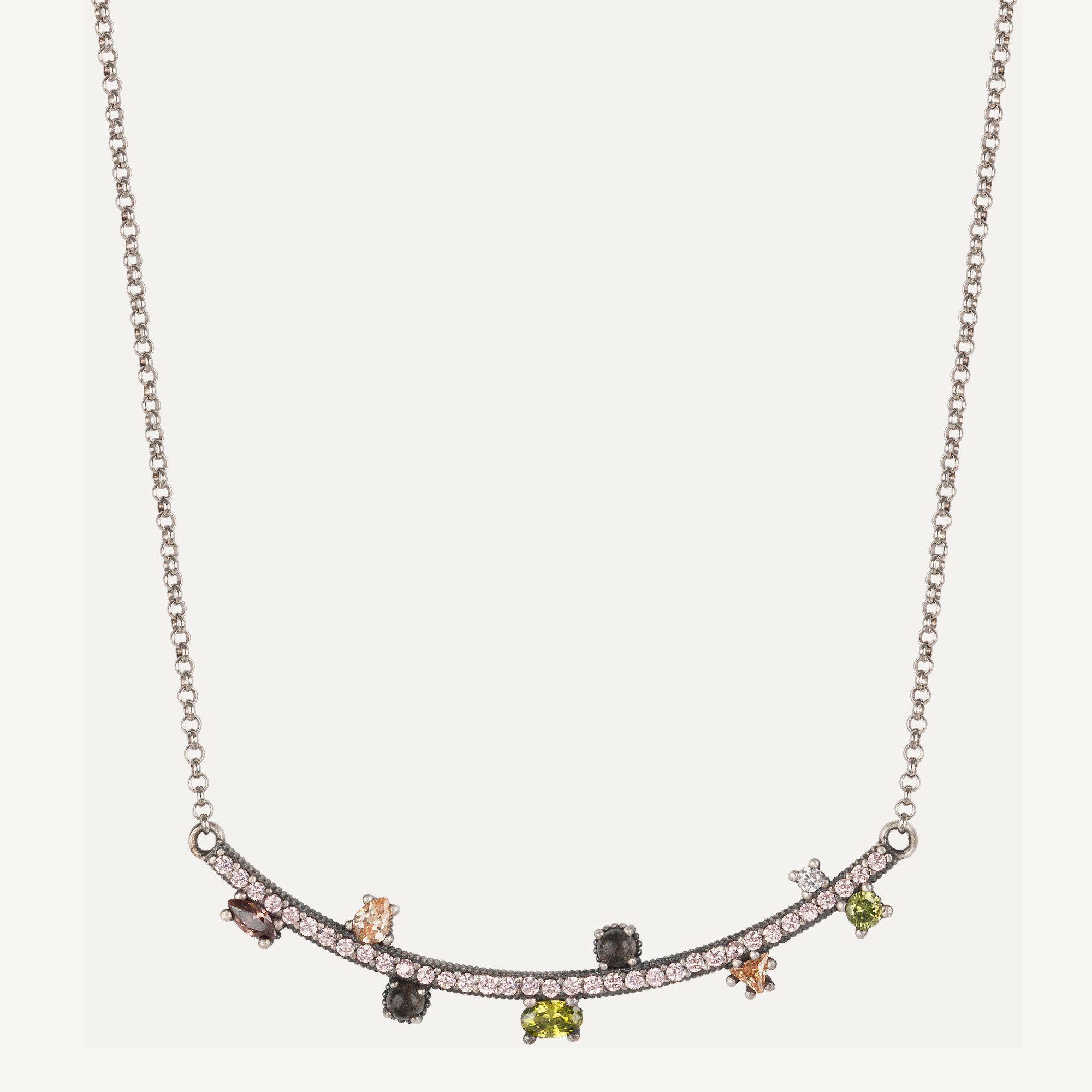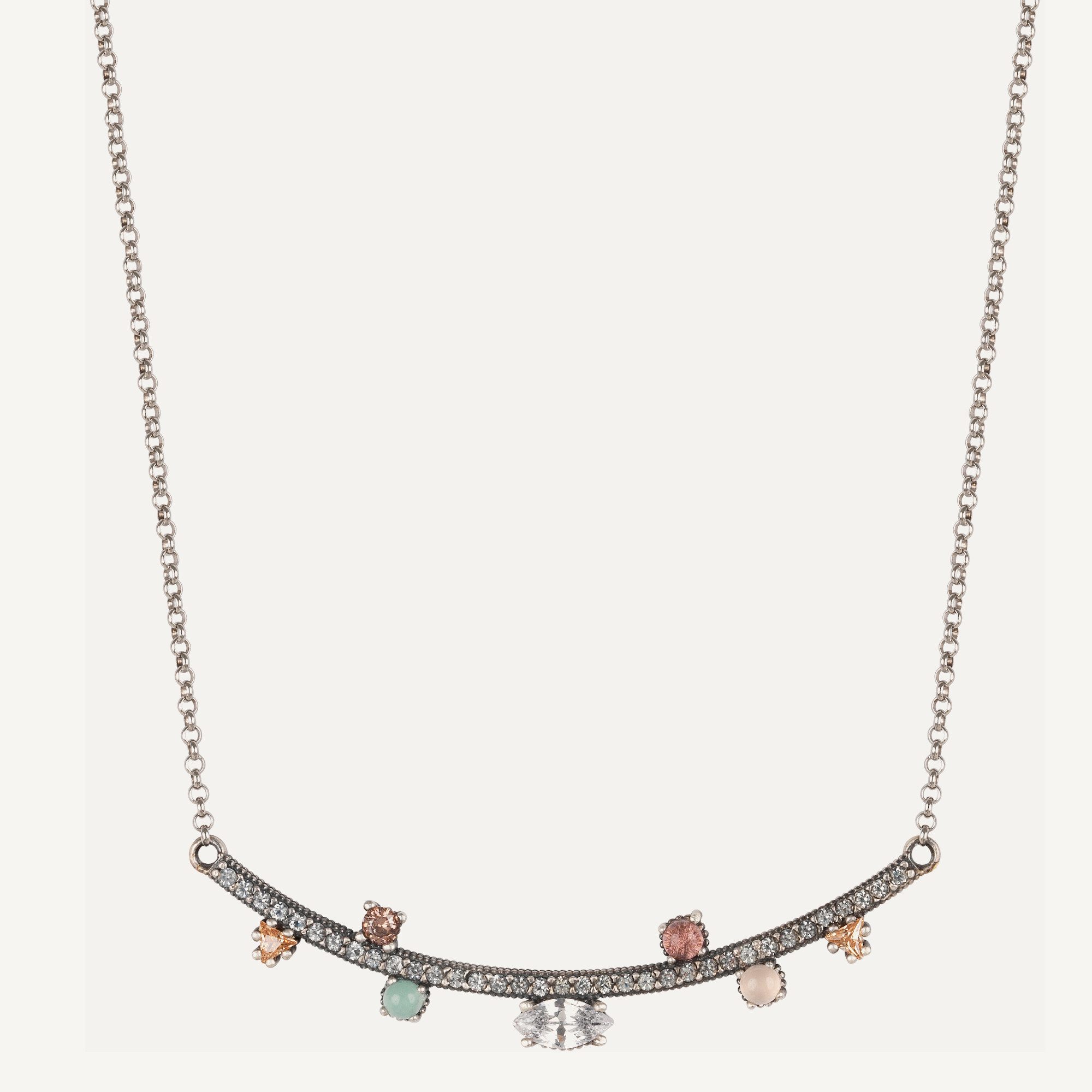 Pendentif en argent 925, tourmaline rose, calcédoine, quartz rose et zircon.