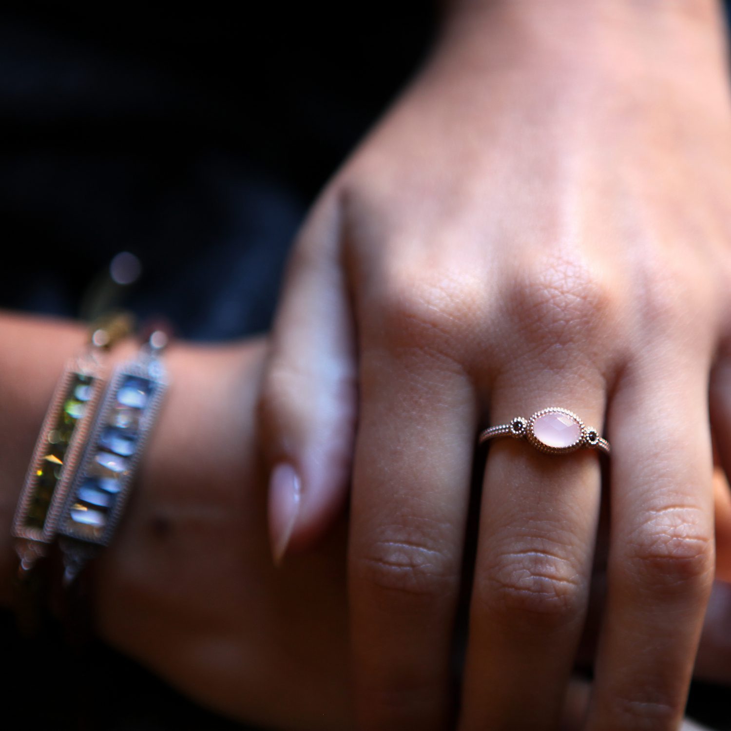 Bague en argent 925 oxydé avec finition antique, quixon de quartz en 3 couleurs au choix, et zircon.