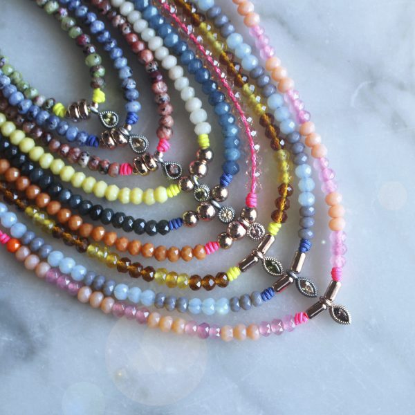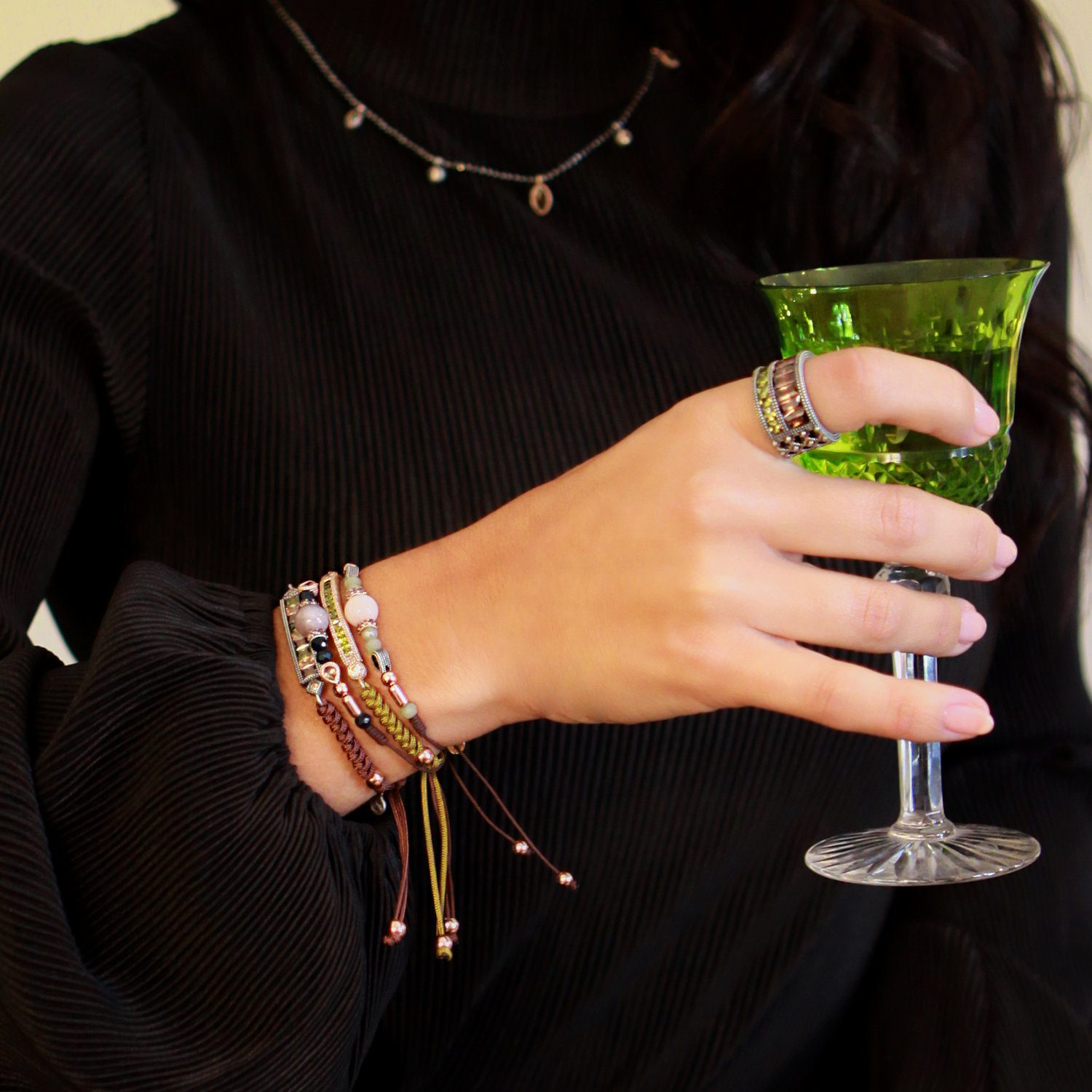 Bracelet en argent 925 avec agate, zircone, perles de verre et nylon.