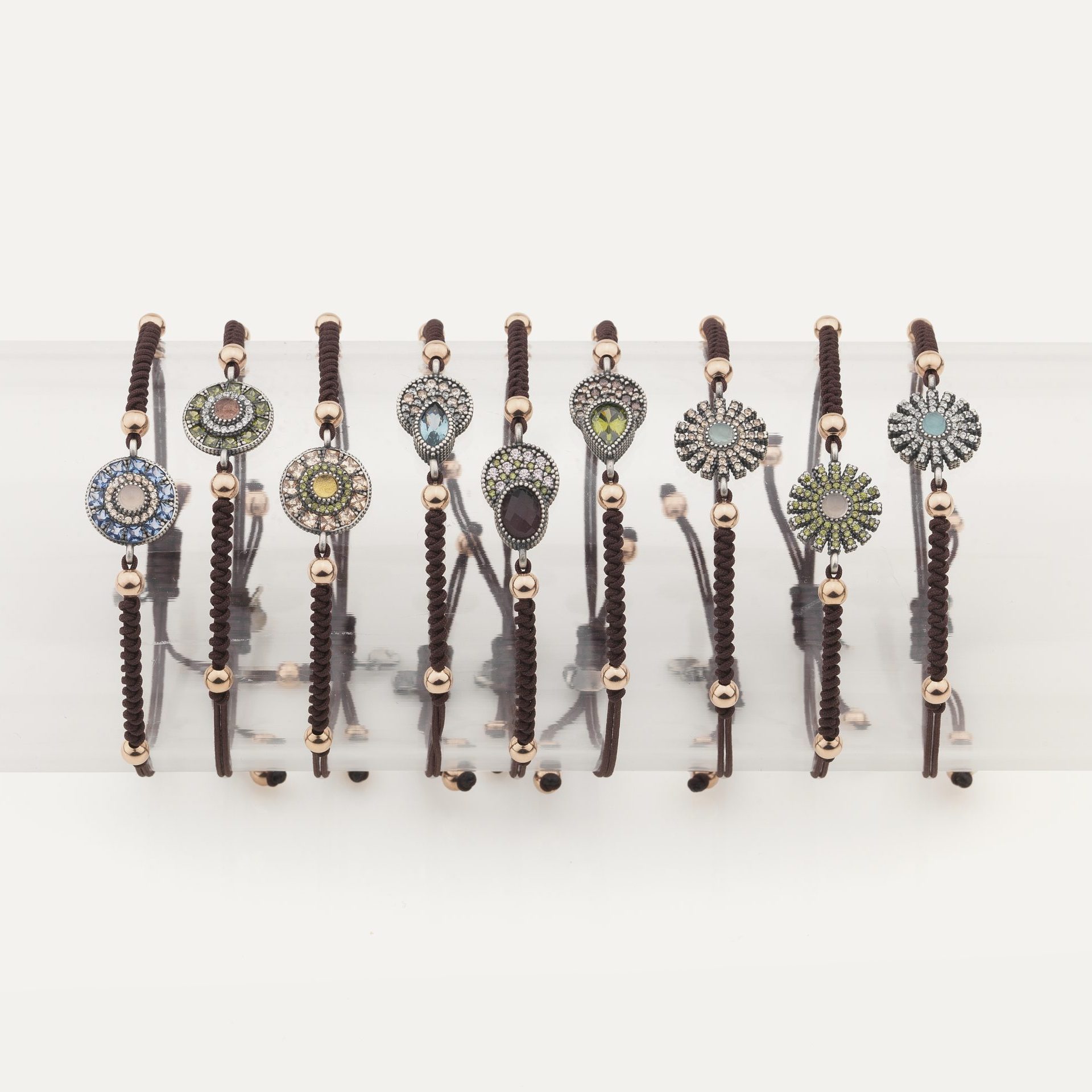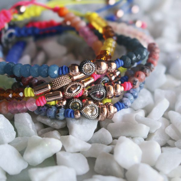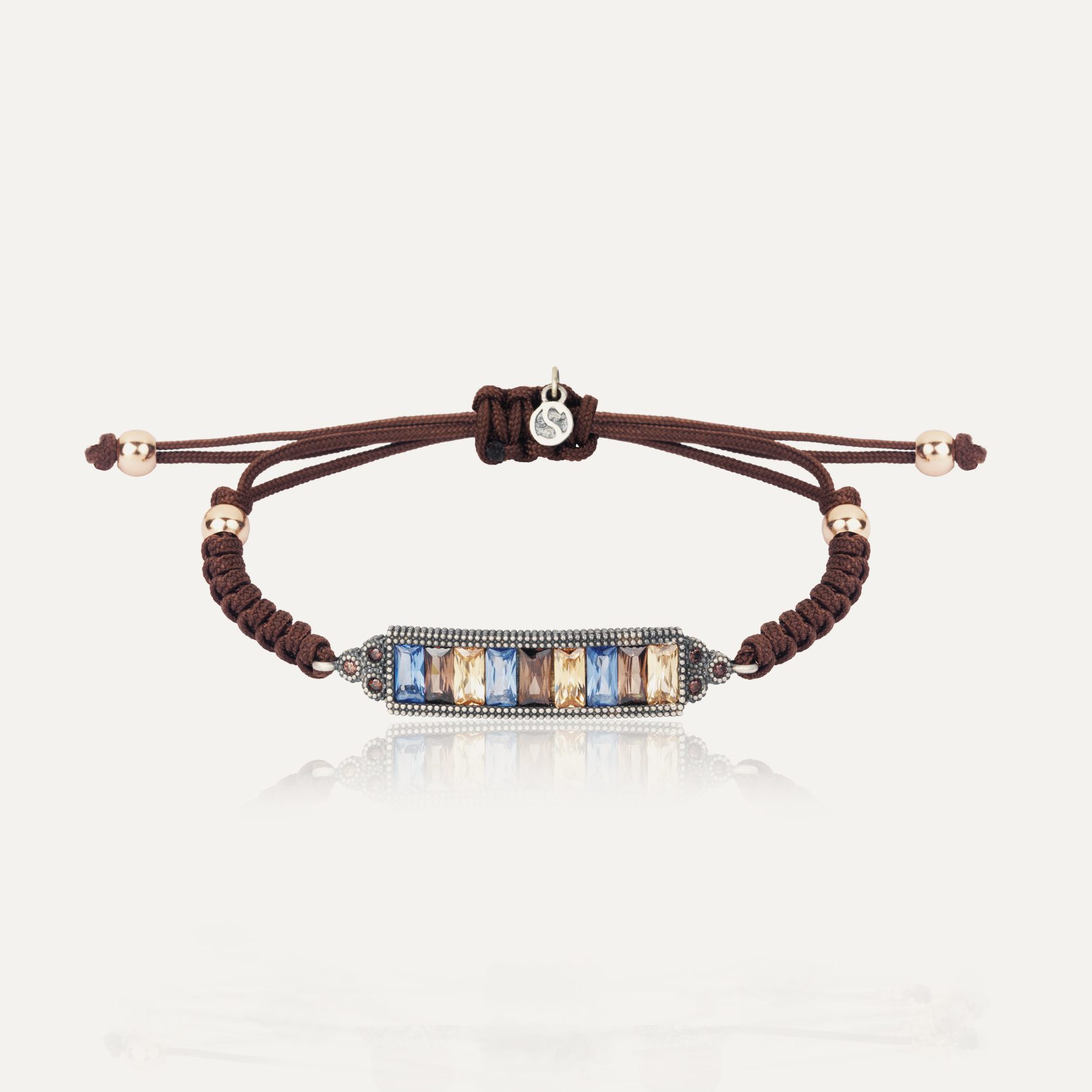 Bracelet en argent 925 avec quartz, zircons et nylon dans un choix de trois combinaisons.