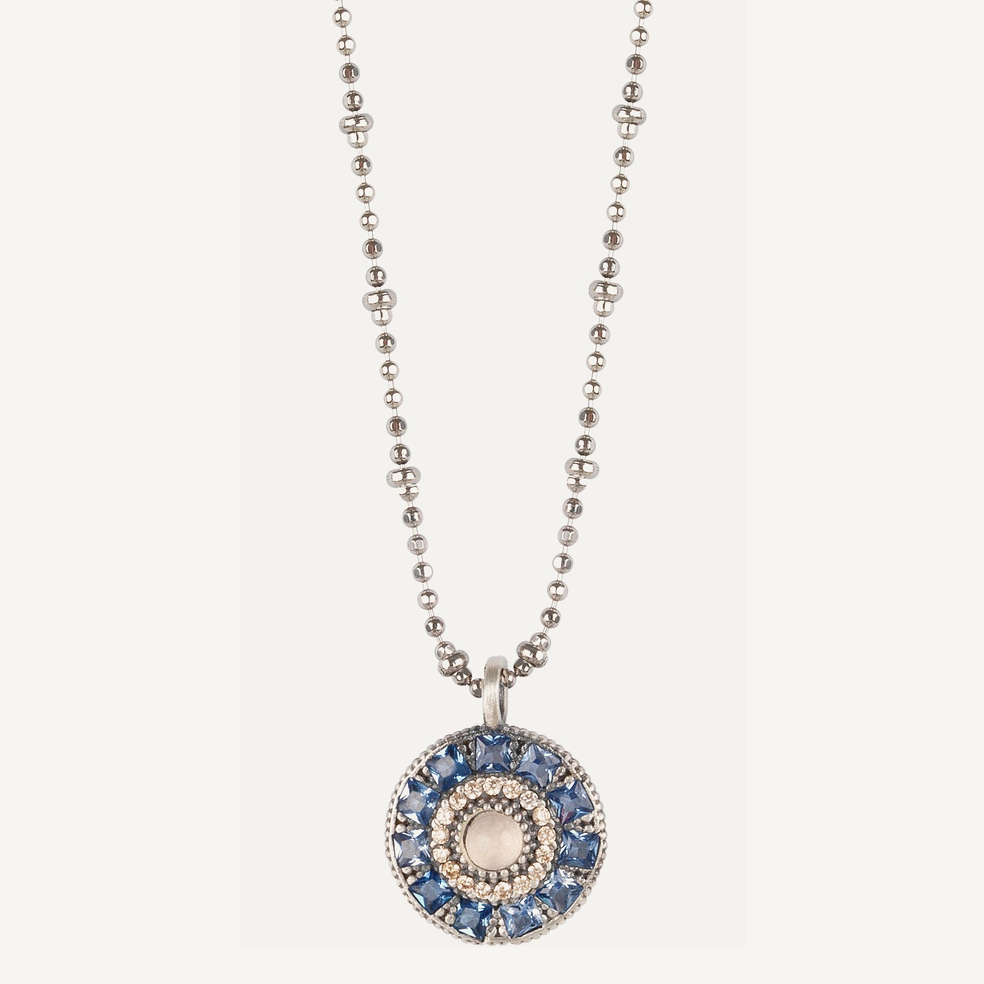 Pendentif en argent 925 avec agate, zircone, perles de verre et nylon.