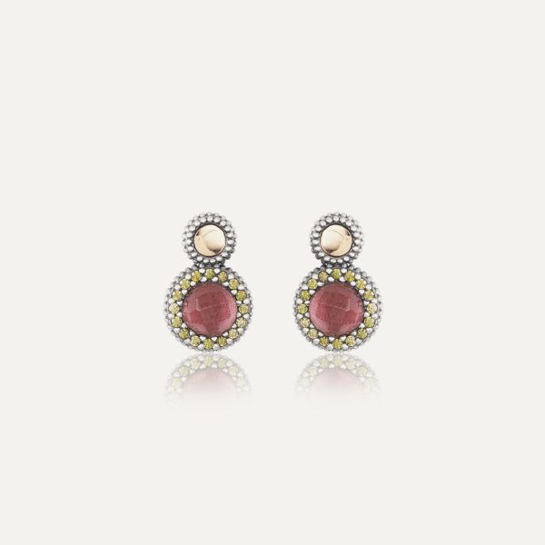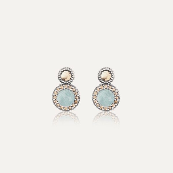 Boucles d'oreilles en argent 925 avec finition antique, or 9kt, quartz et zircone, dans 4 combinaisons de couleurs au choix.