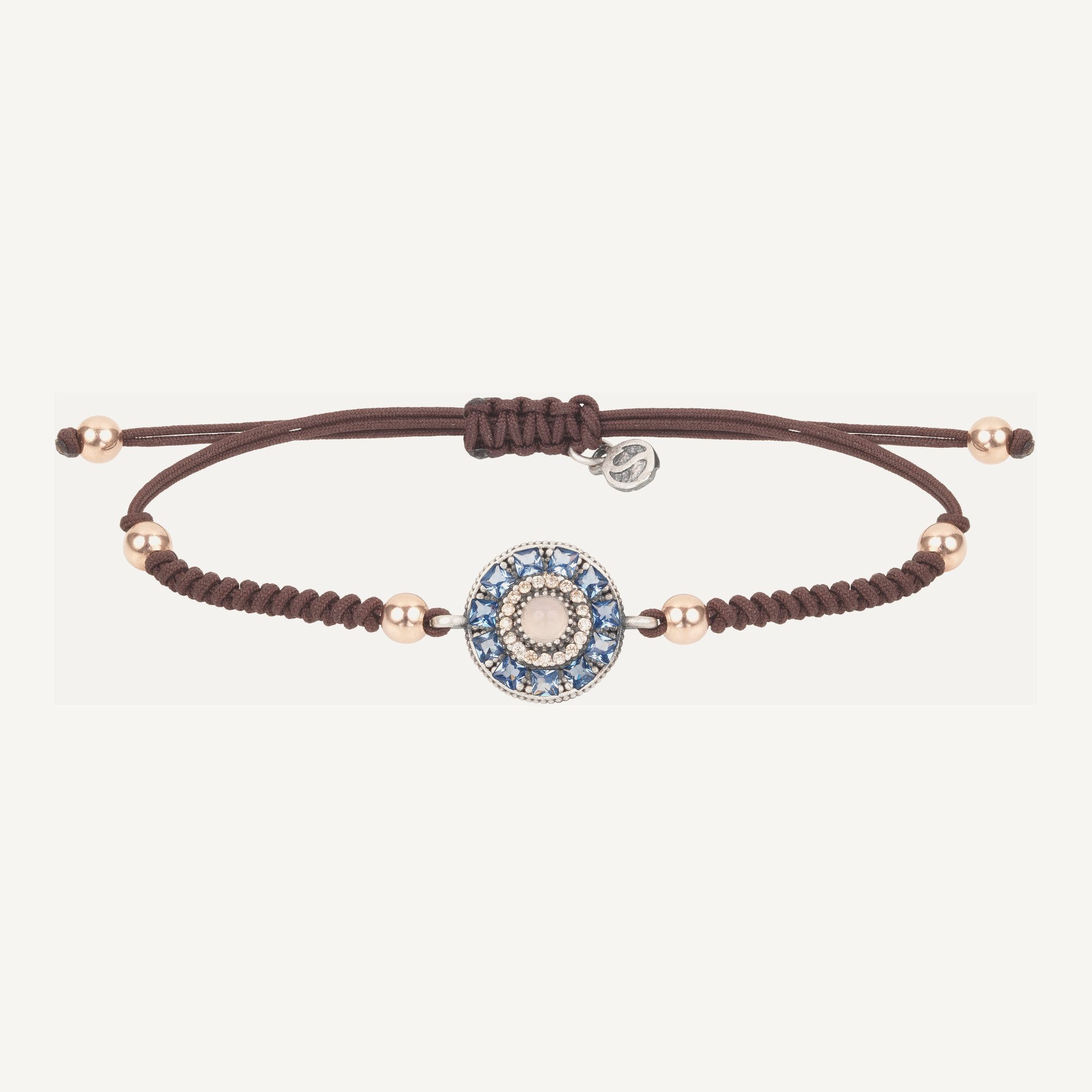 Bracelet en argent sterling plaqué or rose 24kt avec zircons et nylon.