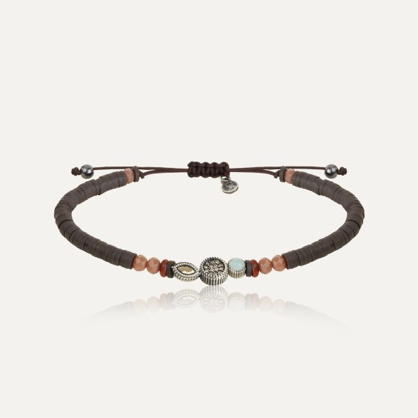 Bracelet en argent 925 avec finition antique, calcédoine, zircone et nylon.