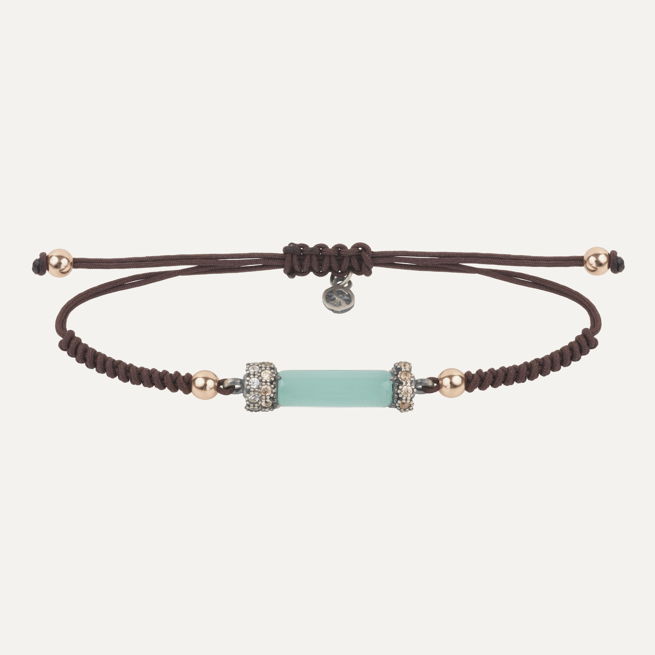 Bracelet en argent 925 avec or 9kt, calcédoine, zircone et nylon.