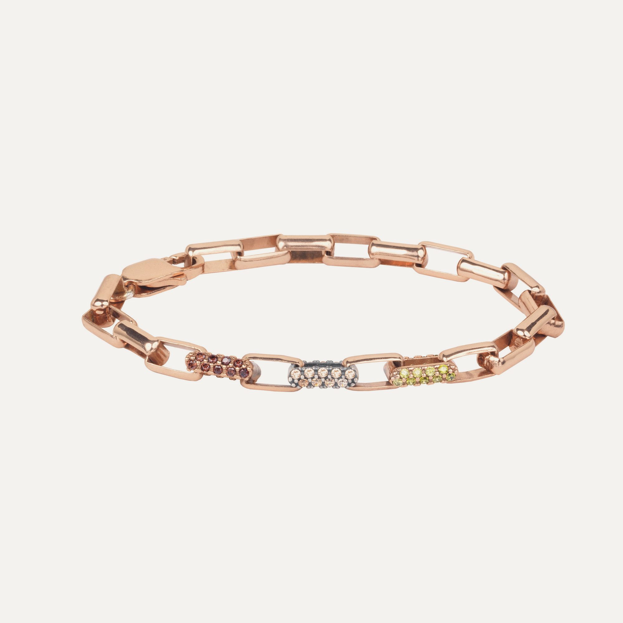 Bracelet en argent sterling plaqué or rose 24kt avec zircon.