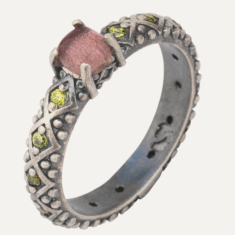 Bague en argent 925 avec plaquage en or rose 24kt, citrine et zircons.