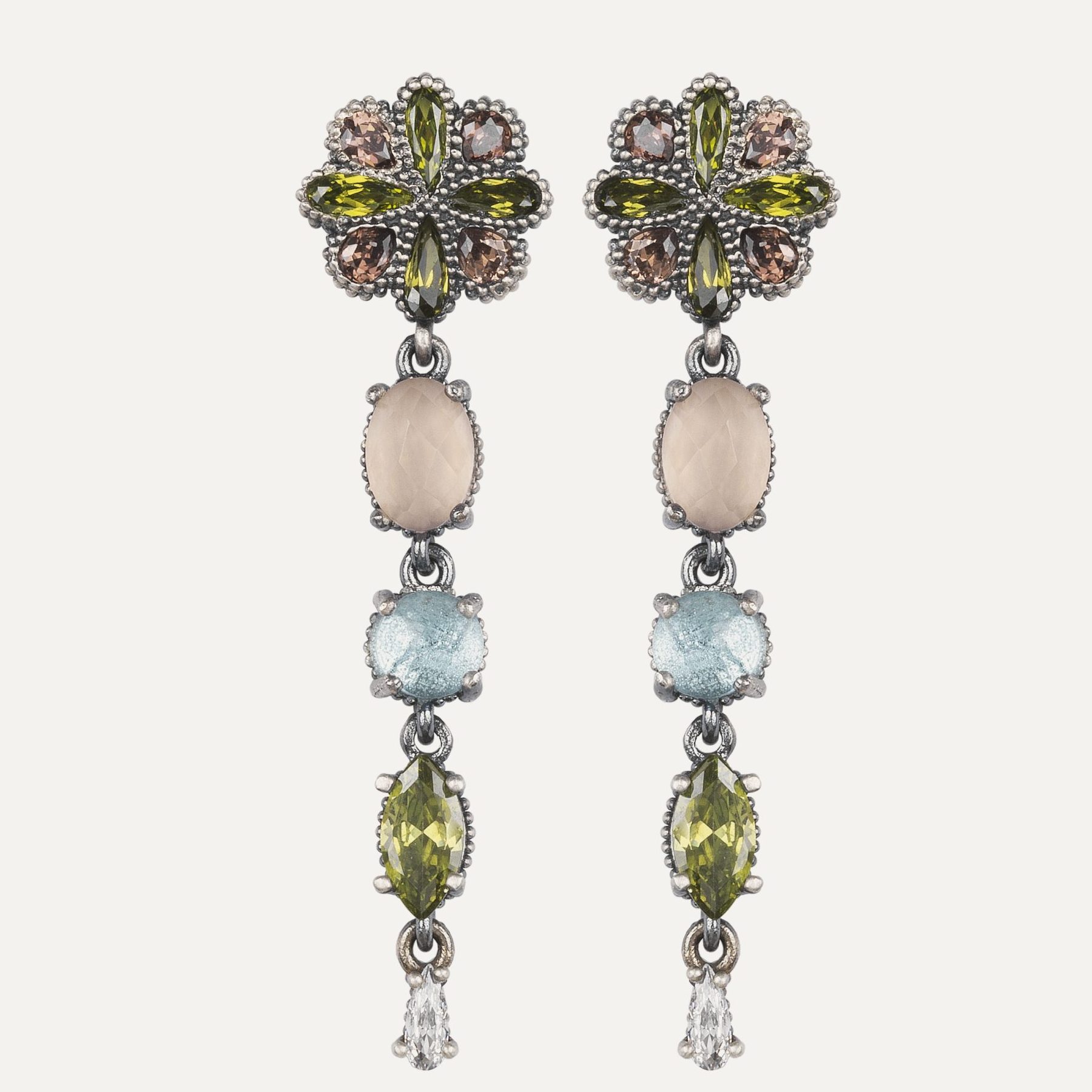 Boucles d'oreilles en argent 925, quartz rose, aigue-marine et zircone.