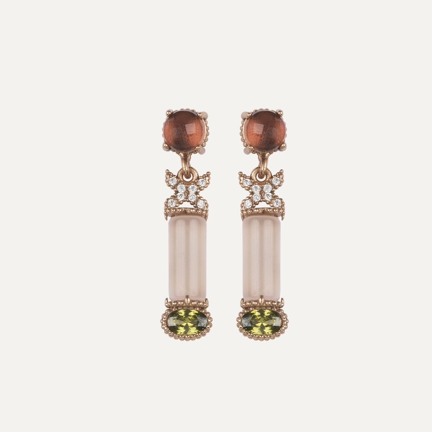 Boucles d'oreilles en argent 925 avec placage en or rose 24kt, calcédoine, quartz rose et zircone.