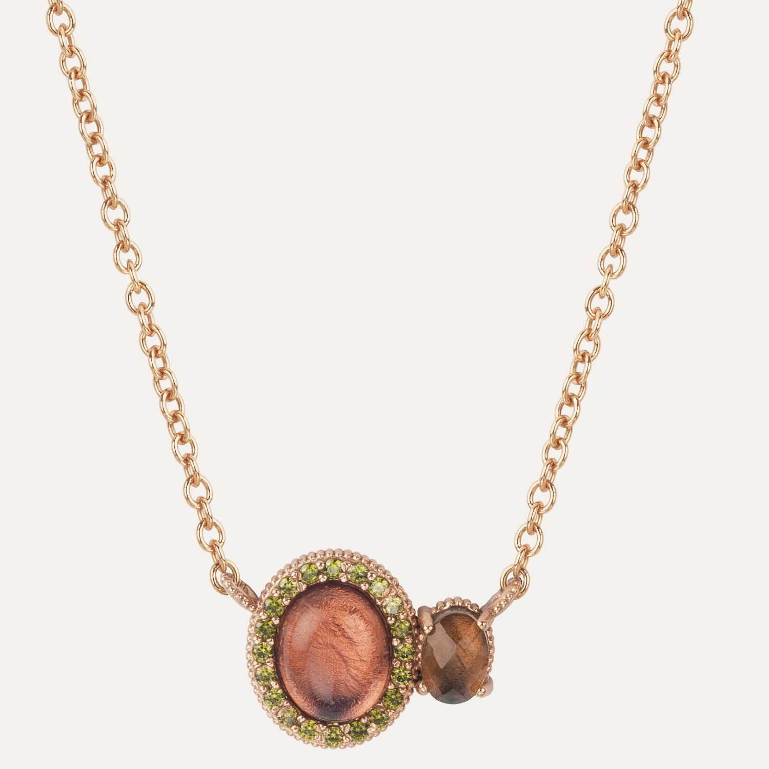 Pendentif en argent 925 avec placage rose 24kt, tourmaline rose, quartz fumé et zircon.