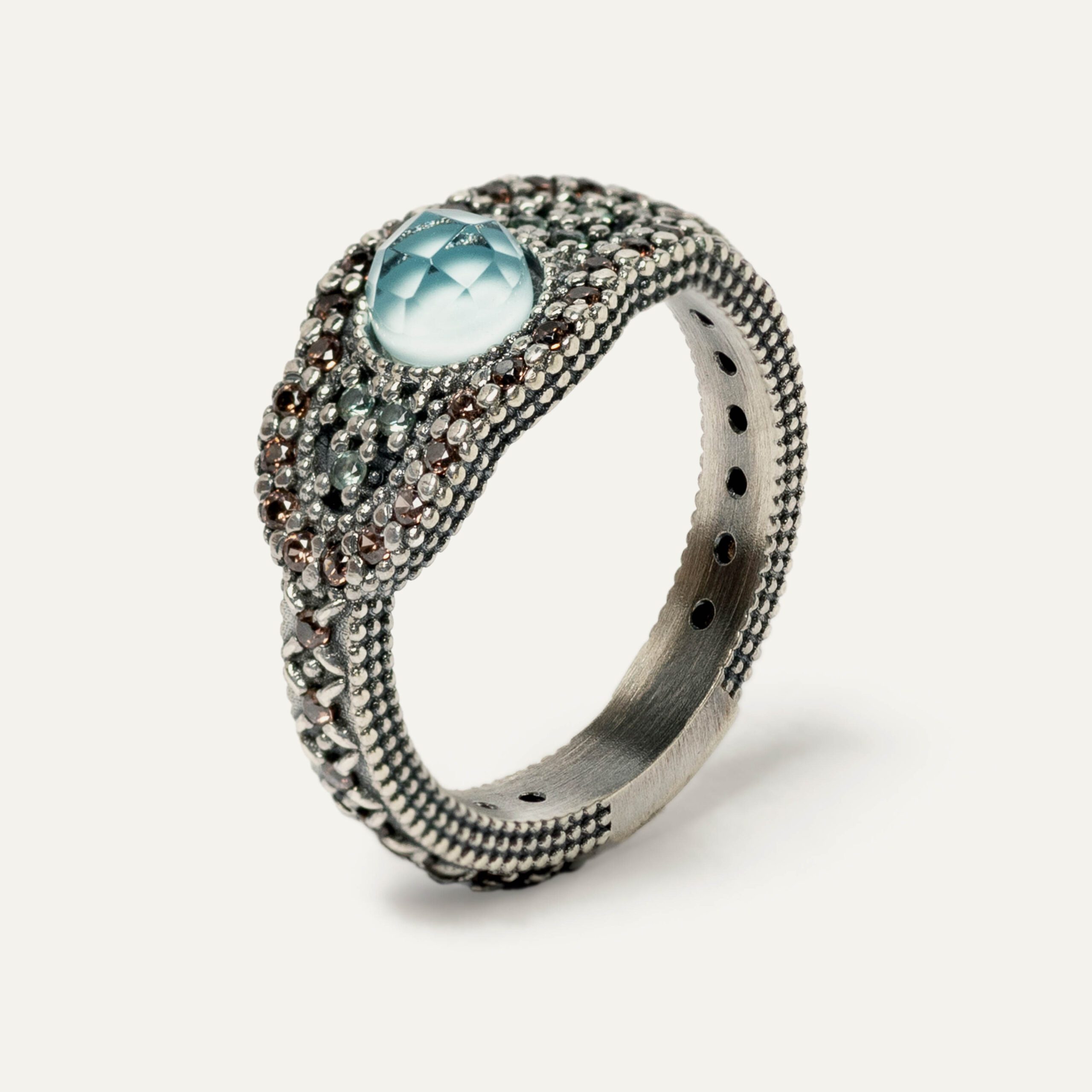 Bague en argent 925 avec quartz et zircons. Disponible en plusieurs couleurs.