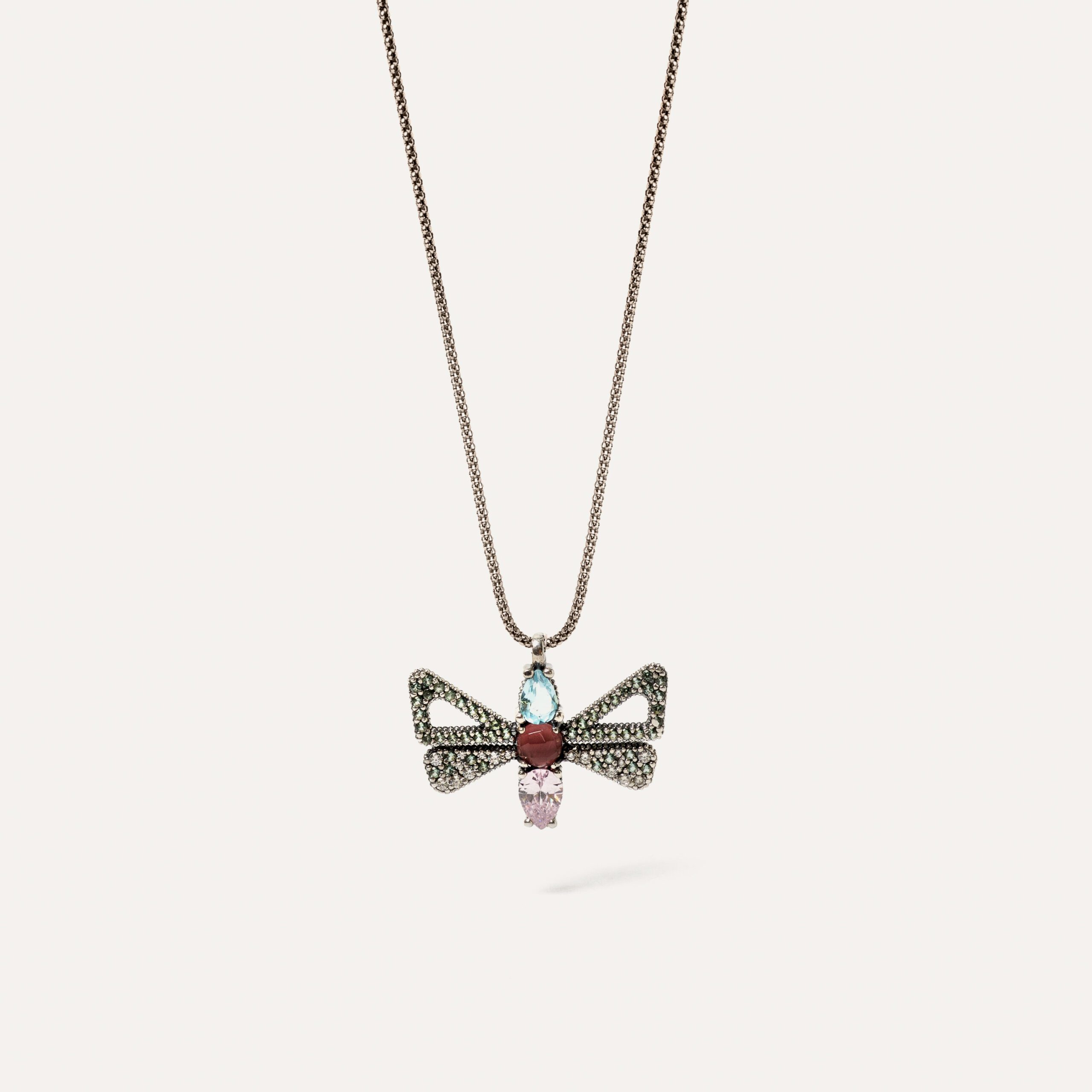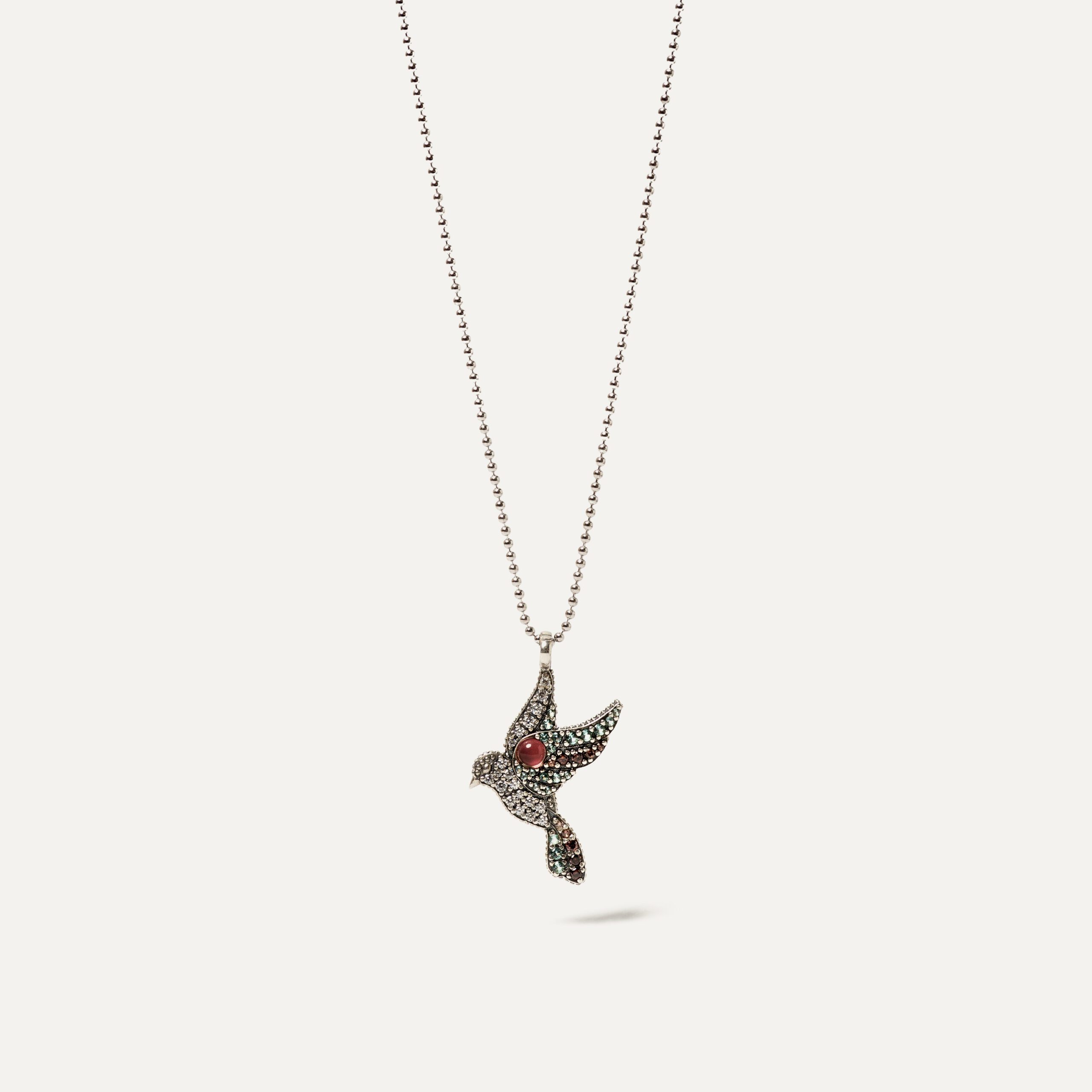 Pendentif en argent 925 avec pierre centrale et zircons. Disponible en plusieurs couleurs.