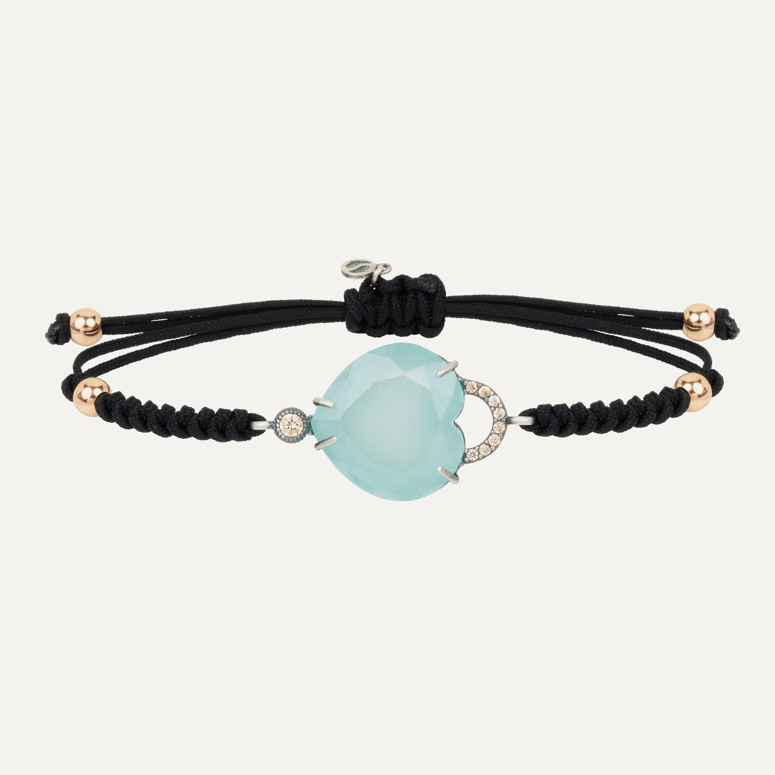 Bracelet en argent sterling, quartz, zircon et nylon, en trois couleurs au choix.