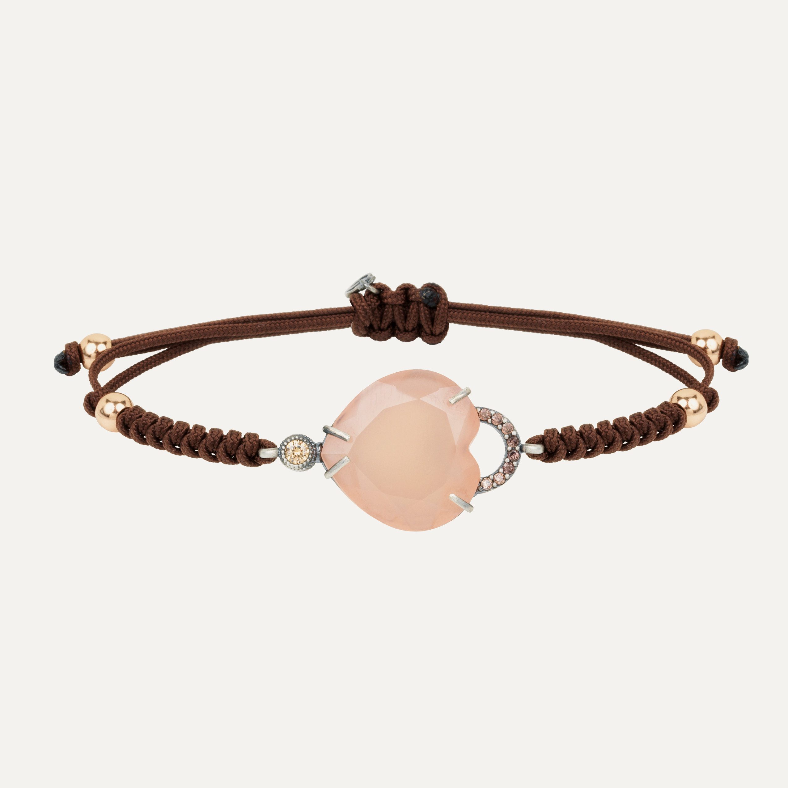Bracelet en argent 925 avec or 9kt, tourmaline rose, zircons et nylon.