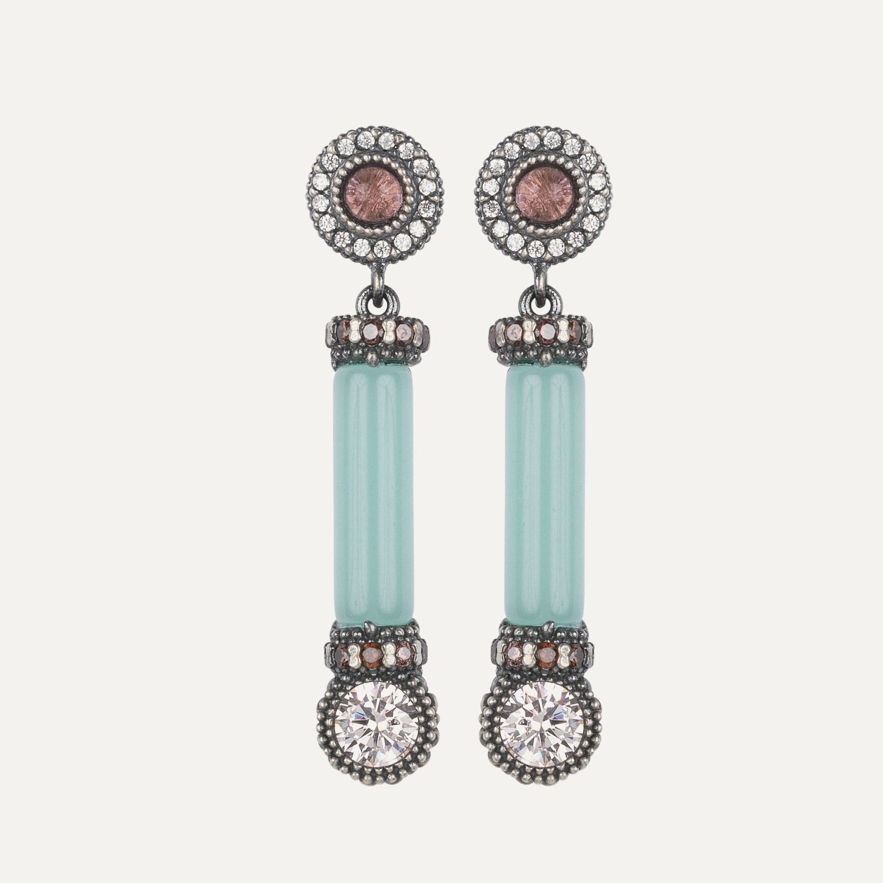Boucles d'oreilles en argent 925, calcédoine, tourmaline rose et zircone.