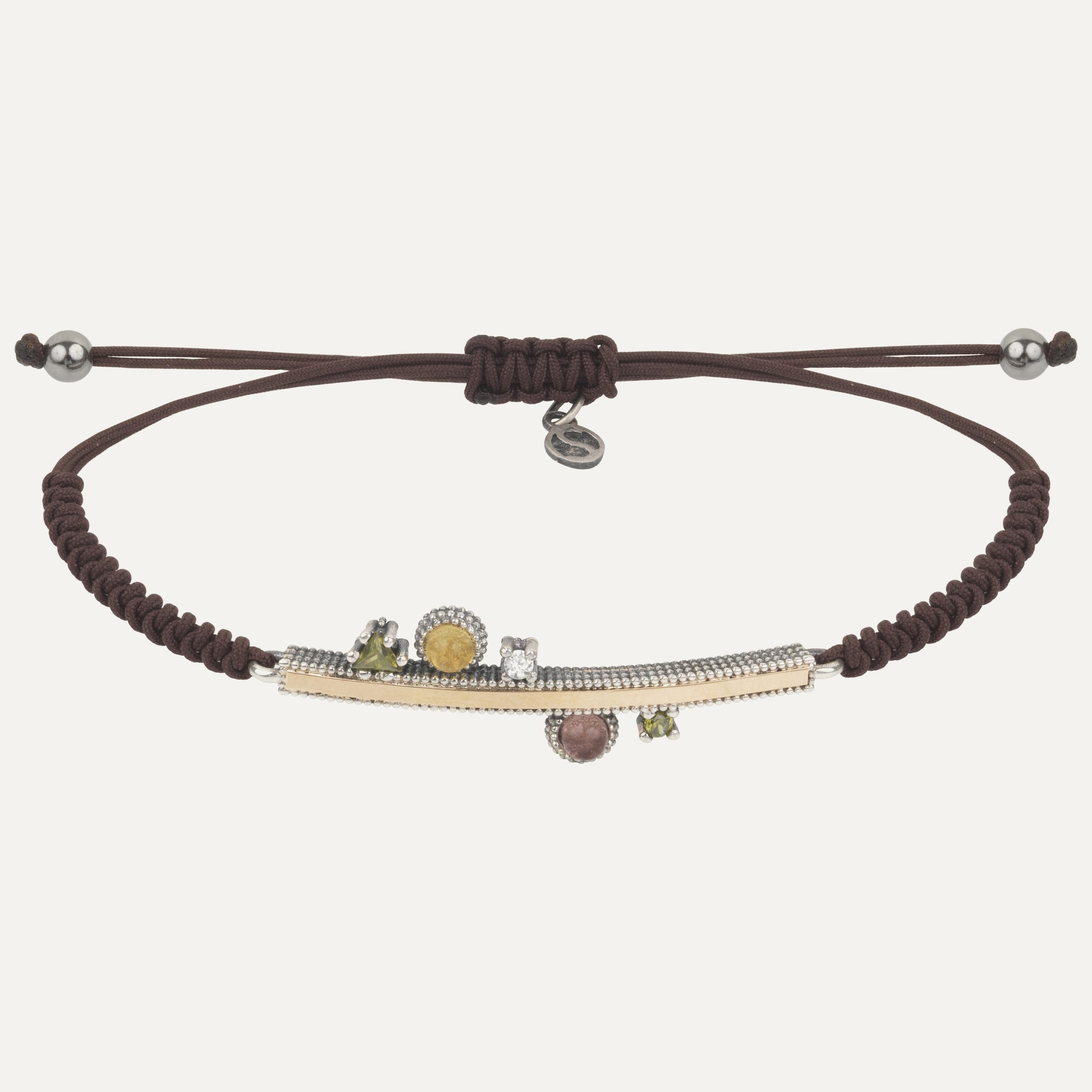 Bracelet en argent 925 avec or 9kt, tourmaline rose, citrine, zircone et nylon.