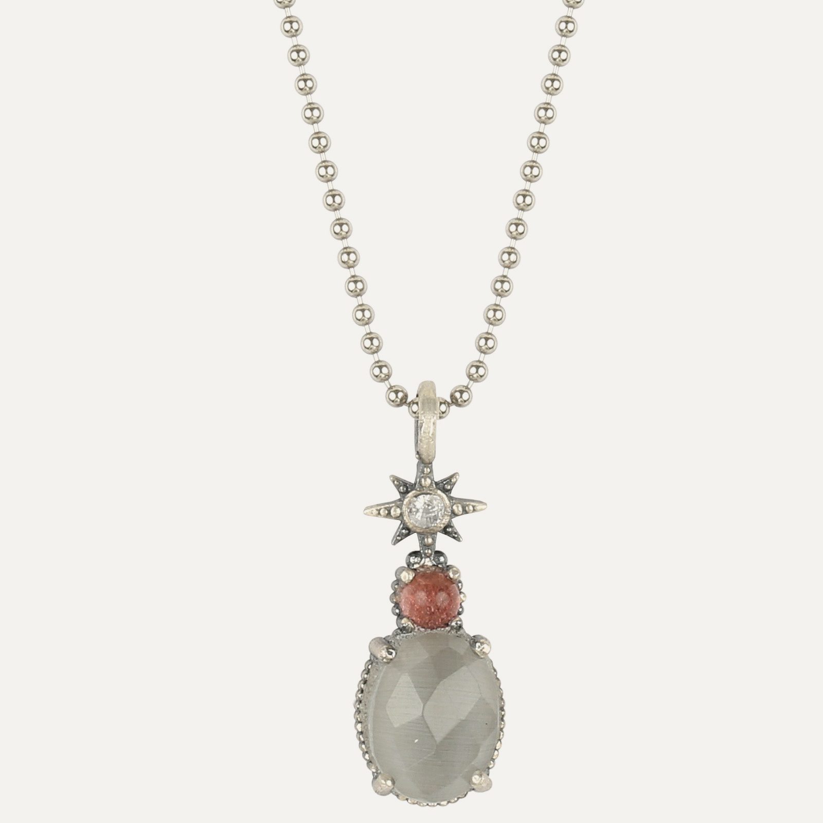 Pendentif en argent 925 avec agate, zircone, perles de verre et nylon.