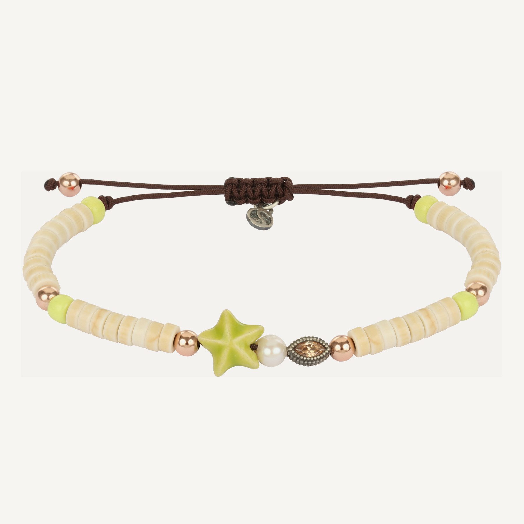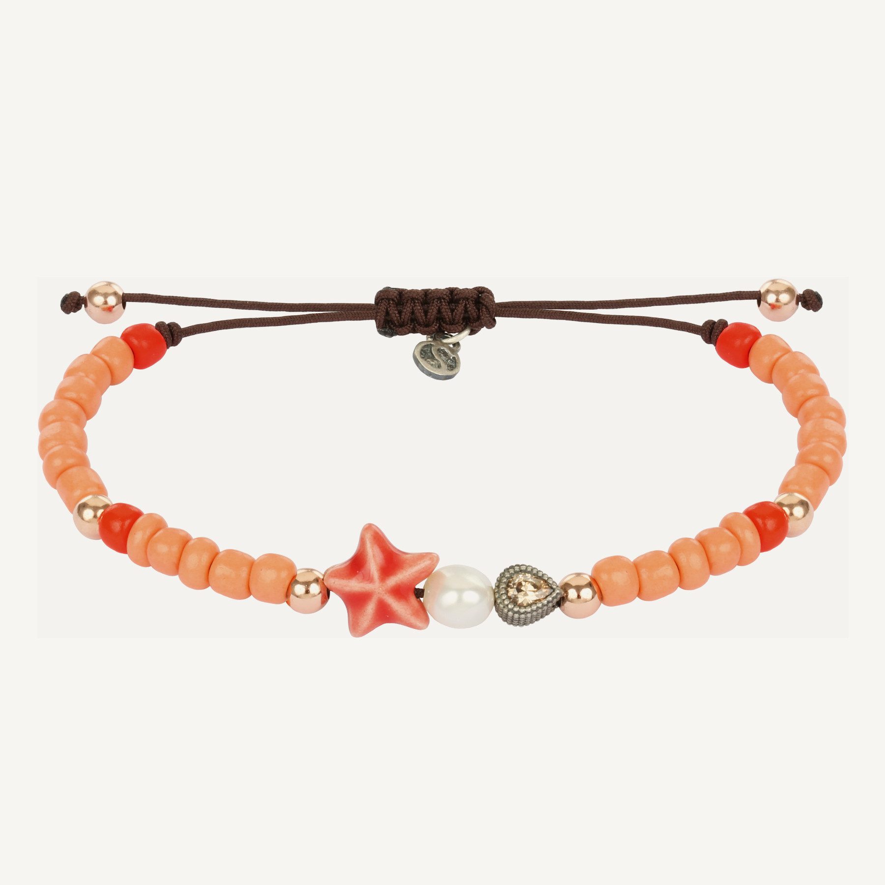Bracelet en argent sterling, perle, zircone, perles de verre, céramique et nylon.