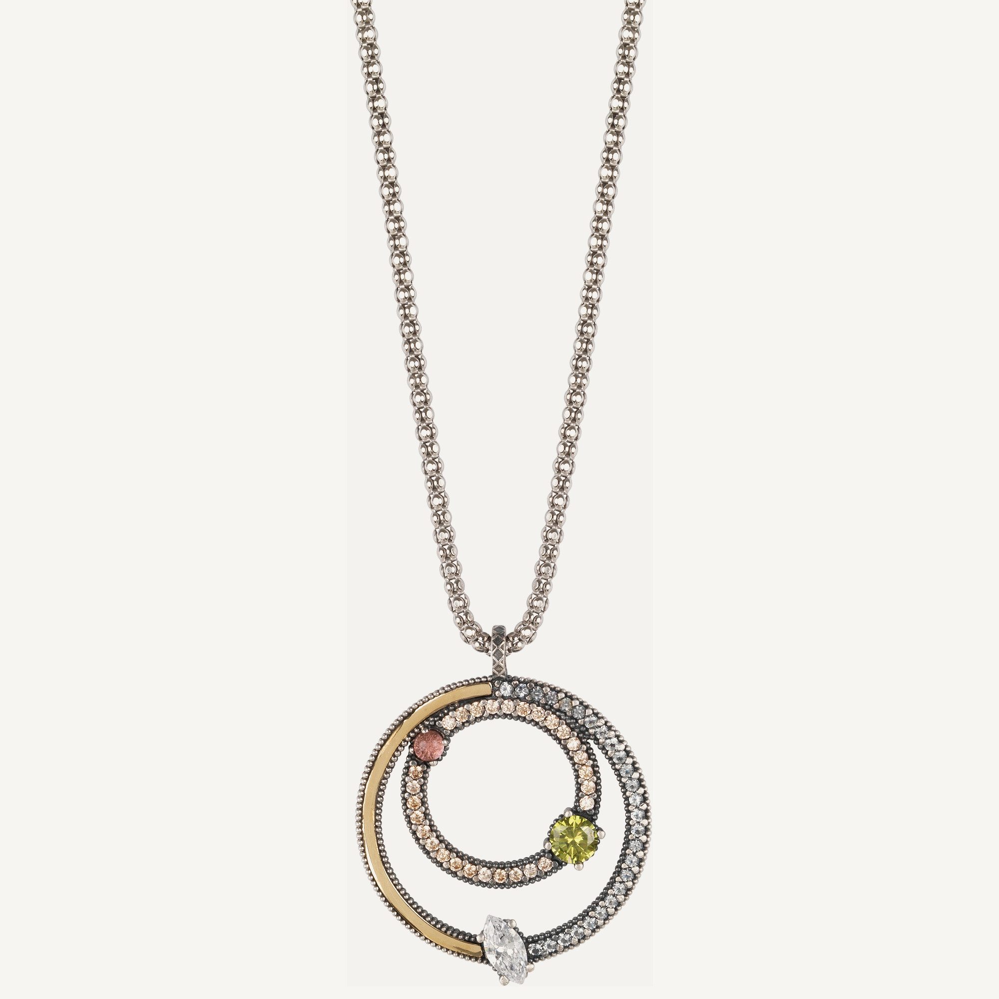 Pendentif en argent 925, or jaune 9 carats, calcédoine et zirconias.