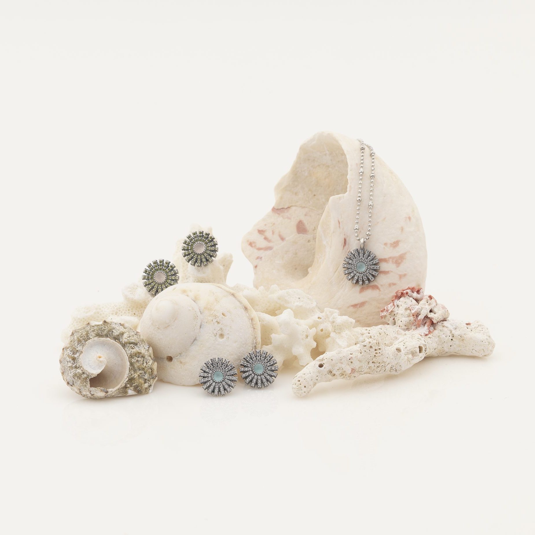 Pendentif en argent 925 avec finition antique, quartz et zircon colorés.
