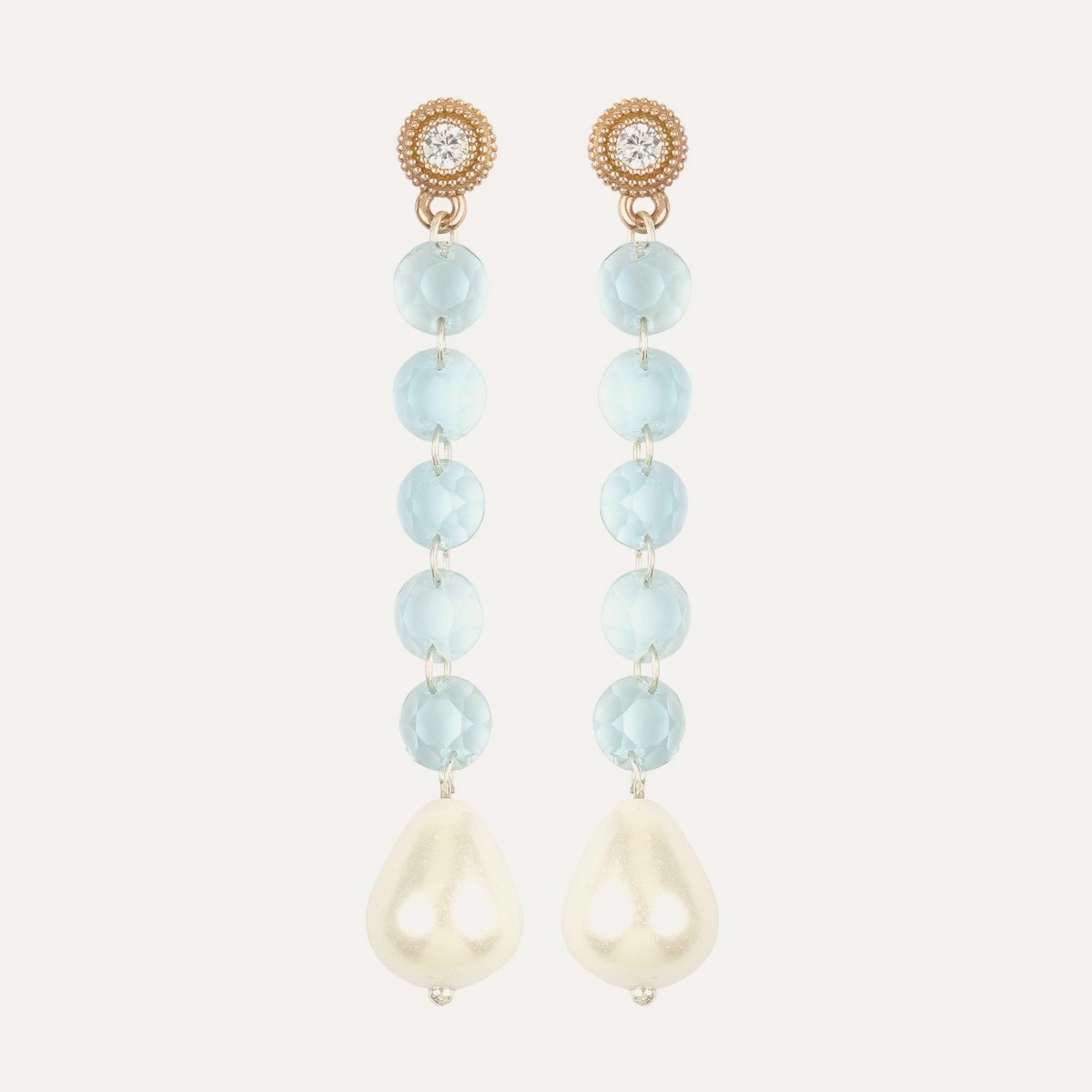 Boucles d'oreilles en argent 925 avec plaquage en or rose 24kt, perle, quartz et zircone.