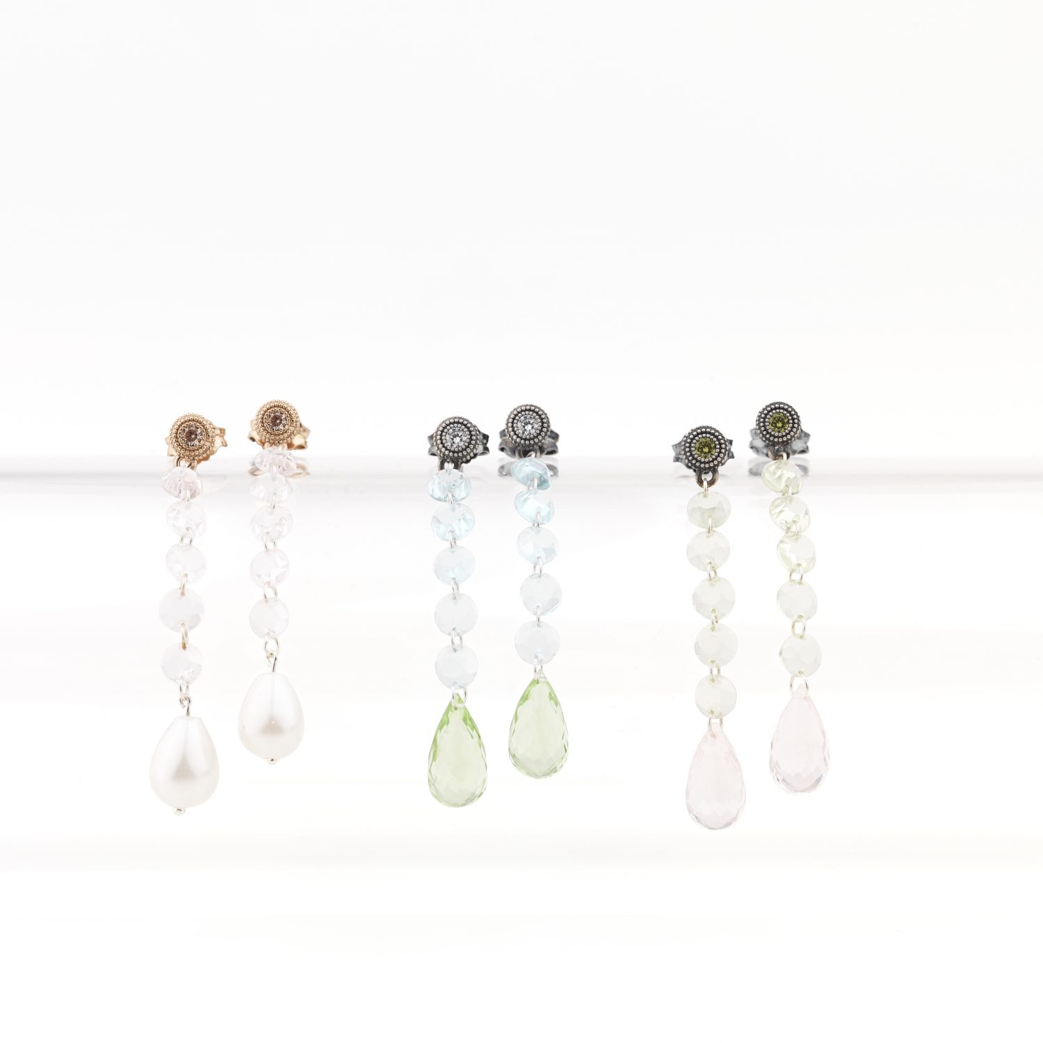 Boucles d'oreilles en argent 925 avec zircons et cabochons. Disponibles en plusieurs couleurs.