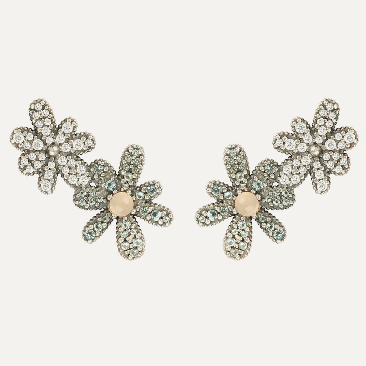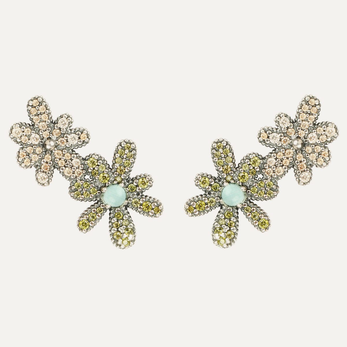 Boucles d'oreilles en argent 925 avec zircons et cabochons.