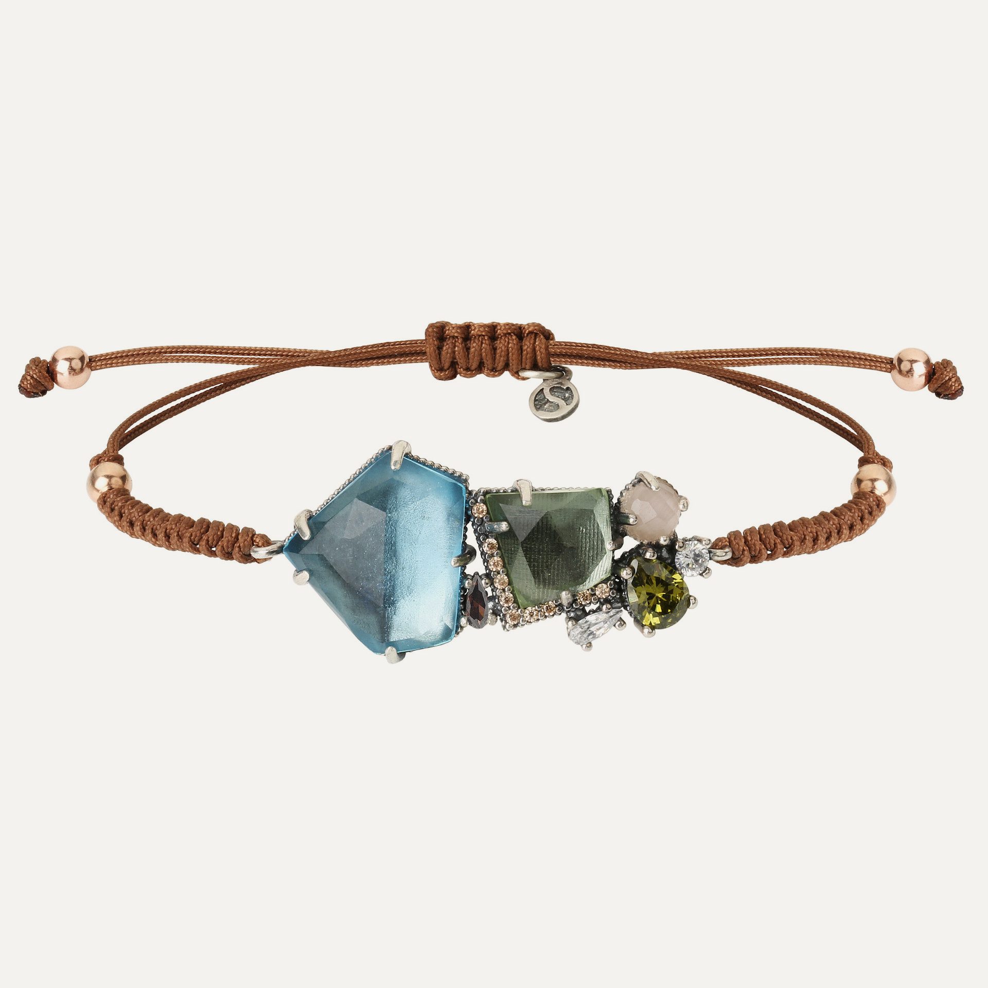 Bracelet en argent 925, quartz, zircon et nylon.