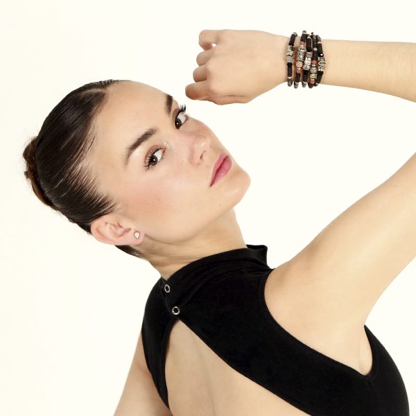 Pulsera de plata de ley 925 con acabado envejecido, cuentas de cristal, hematites, caucho y nylon en dos modelos a elegir.