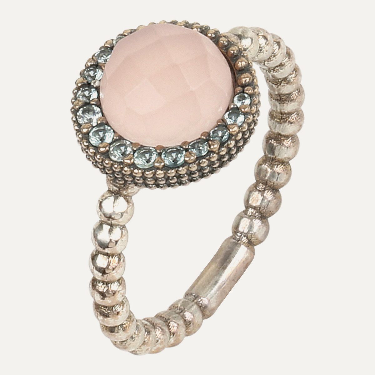 Bague en argent 925 avec finition antique, tourmaline rose, quartz rose et zircon.