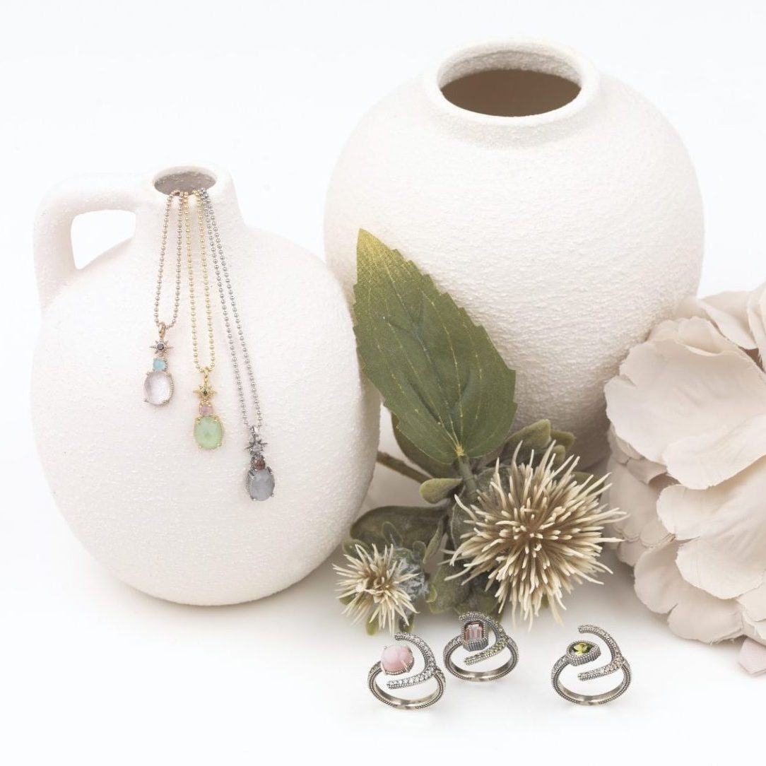 Les boucles d’oreilles Eclair de Sunfield se situent à mi-chemin entre la boucle d’oreille longue et le clou d’oreille, idéales pour les personnes plus conservatrices qui souhaitent prendre un peu de risque sans perdre le contrôle. En l’occurrence, il s’agit d’un modèle élégant en argent sterling 925 avec une finition antiquaire, d’une longueur d’environ 22 mm, composé d’une partie circulaire fixe avec un cabochon de tourmaline rose lisse entouré de zirconium champagne taillé en brillant et d’une partie mobile en forme de croix avec des zirconiums champagne taillés en brillant.